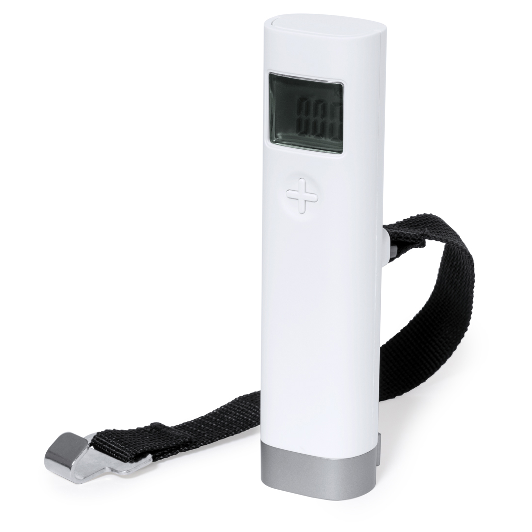 Leichte und praktische Gepäckwaage. Mit digitaler Anzeige und Wiegekapazität bis 50 kg. Leicht zu tragen und mit dem praktischen Haken an Koffern, Rucksäcken oder Taschen zu befestigen. Bedienungsanleitung in Englisch und Spanisch verfügbar. Batteriebetrieben (1 Knopfzelle im Lieferumfang enthalten).