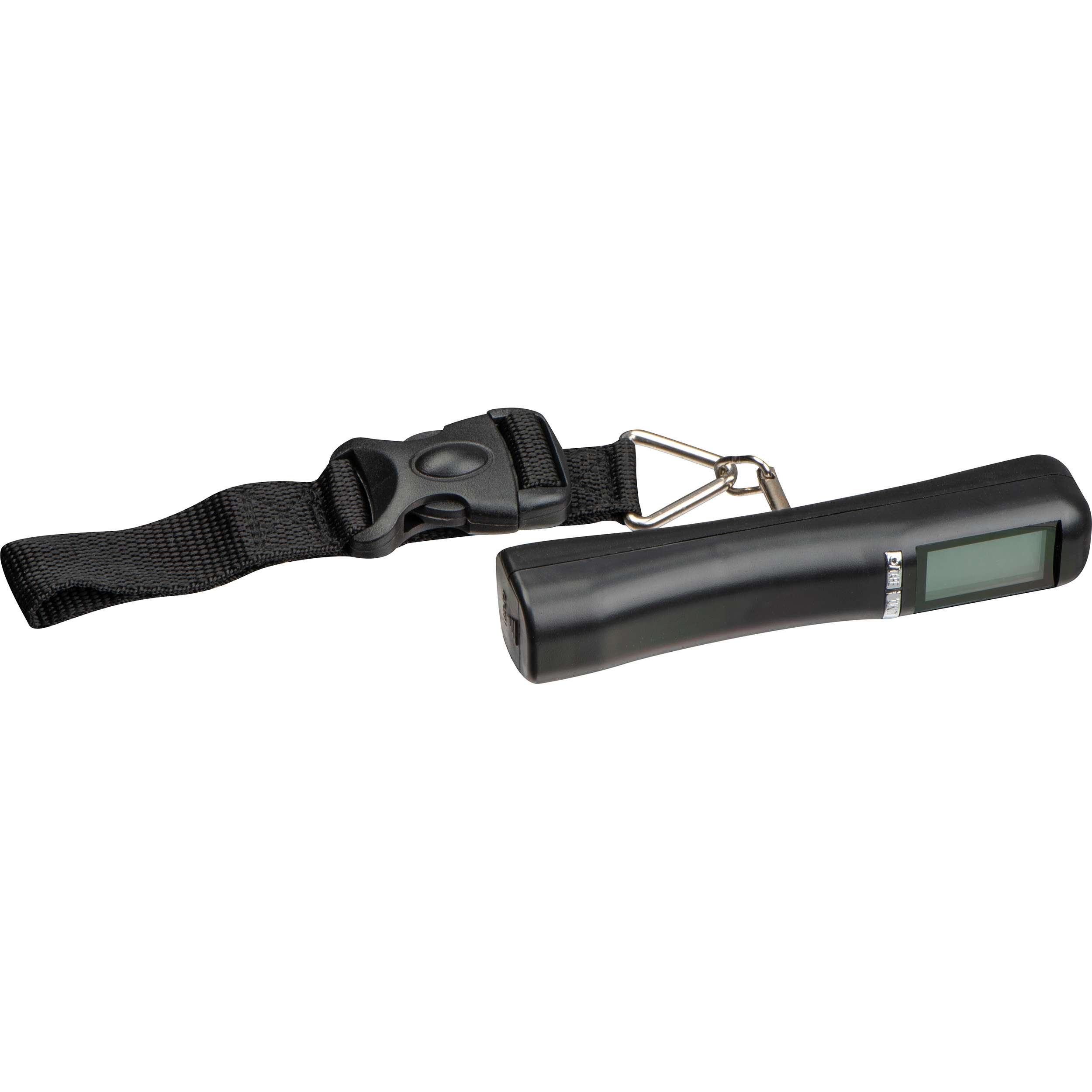 Elektrische Gepäckwaage mit Messung in g, oz, kg und lbs. Integrierte Tarafunktion für genaues Wiegen, helle LCD-Anzeige für Gepäck bis 50kg, bequemer stabiler Handgriff. Ihre Werbung drucken wir auf den Handgriff. Exklusive 2 AAA Batterien (bestellen Sie diese gleich mit, siehe Art. 999400).