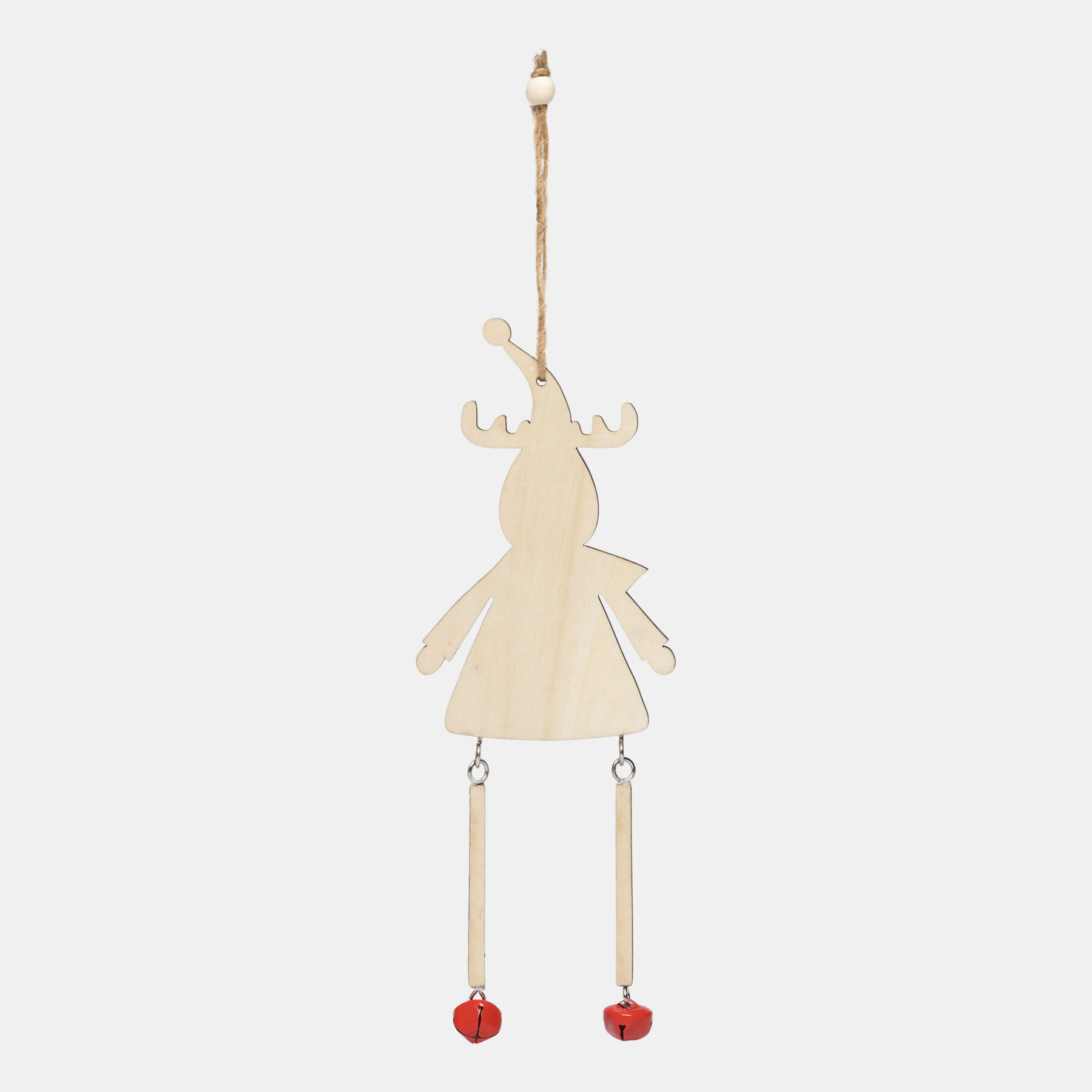 Geschenk- / Baumanhänger WOODEN ELK: Schal in 3D-Optik, mit beweglichen Beinen und Juteband zum Aufhängen