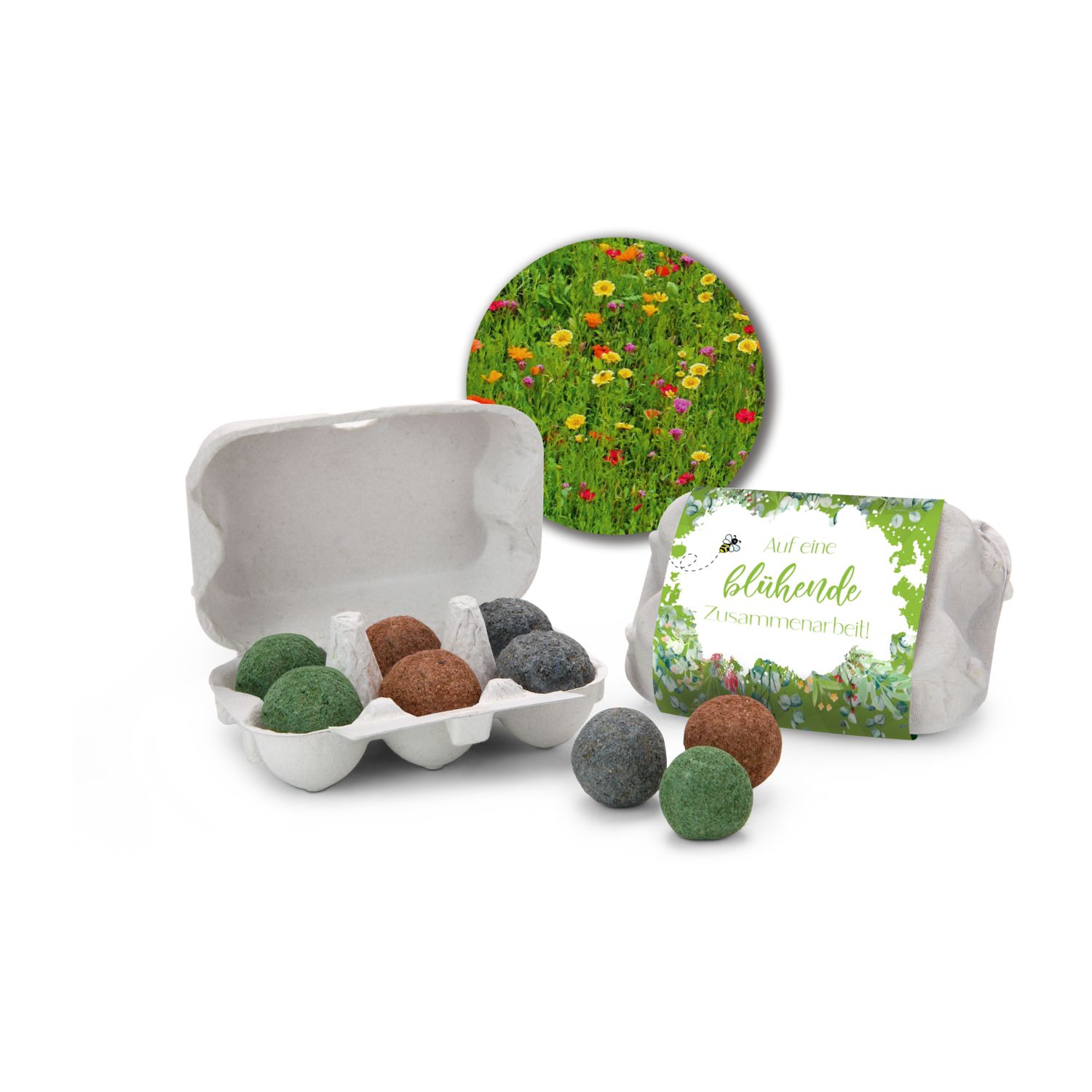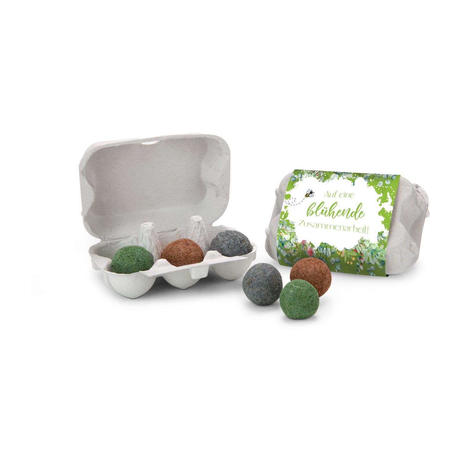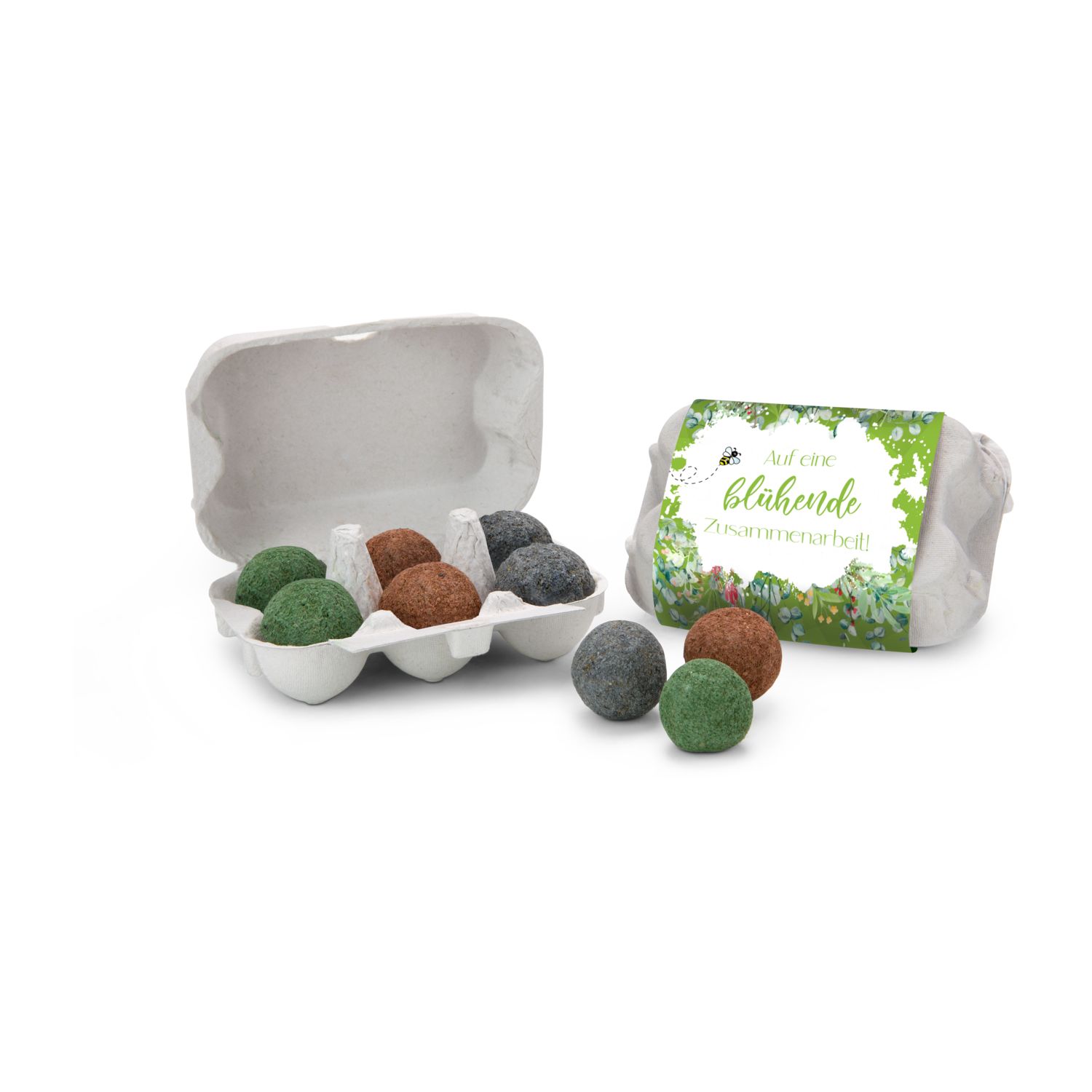 Informationen zu "Geschenkartikel: Bienenweide im Eierkarton mit 6 Samenbomben; Auf eine blühende Zusammenarbeit"