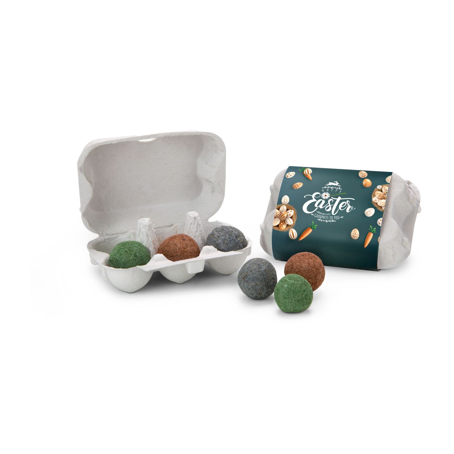 Informationen zu "Geschenkartikel / Präsentartikel: Bienenweide im Oster-Eierkarton, 6 bunte Samenbomben"