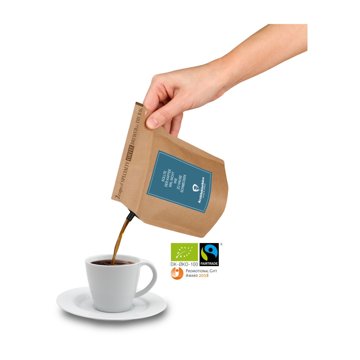 Veredelung: Etikett Brewer (4c), Werbeanbringung auf dem Beutel, 8 x 11,1 cm (inkl. Beschnitt)