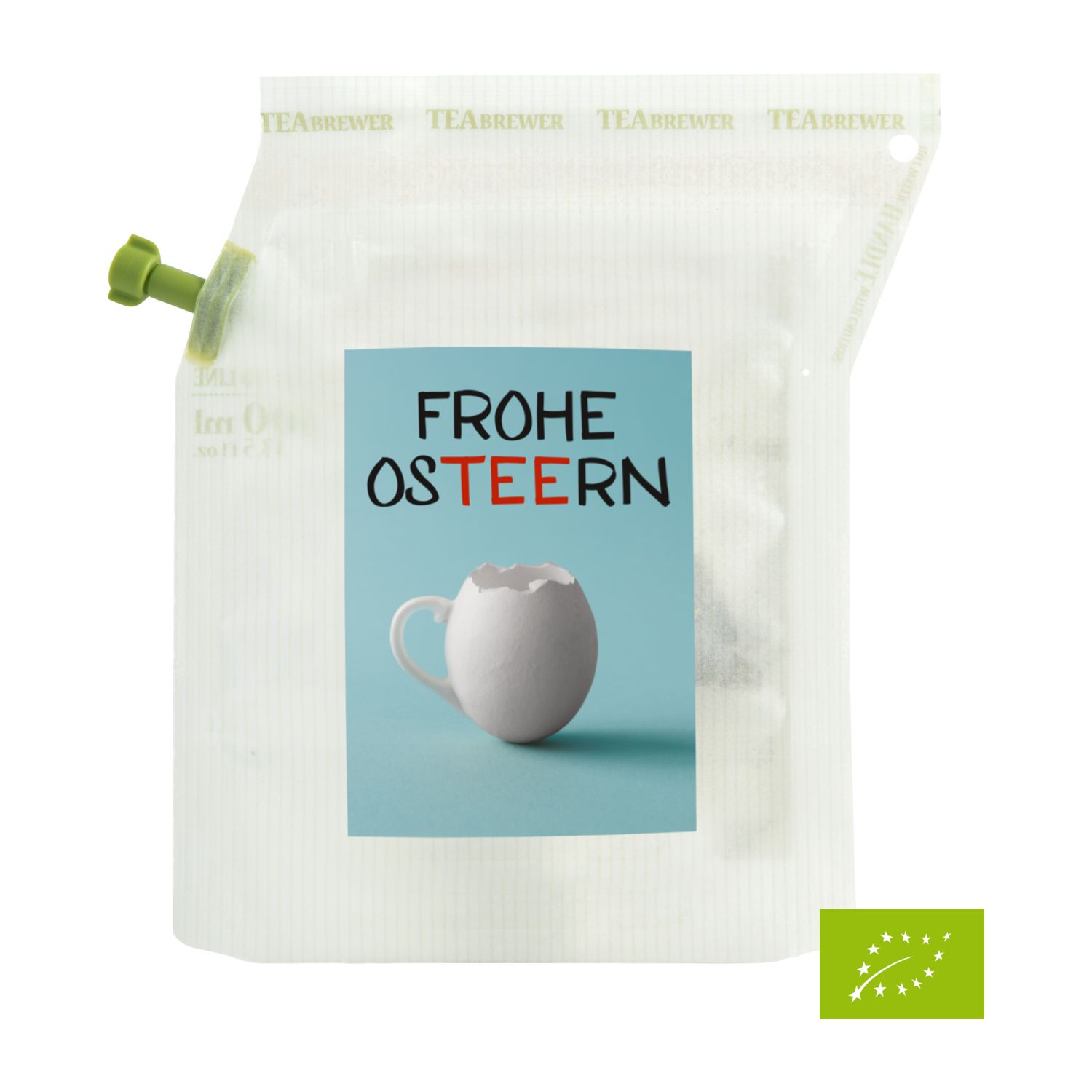 Verschenken Sie Fröhlichkeit und Genuss zur Osterzeit: kleines Präsent, große Wirkung - und das im Frühling! Mit diesen hübschen Brühbeuteln lässt sich die Hektik des Alltags schnell vergessen. Einfach heißes Wasser einfüllen, ziehen lassen, durch den integrierten Filter ausgießen und genießen. Kein Instant-Produkt! Pure Osterfreude. Ideal auch für das Büro oder für unterwegs. Ein Beutel ergibt zwei Tassen und kann wiederverwendet werden. Erhältlich mit 6 verschiedenen Oster-Aufklebern. Herstellung 100% CO2 neutral (WeForest validiertes Baumpflanzungs-Projekt + UN kontrolliertes REED Kohlenstoffkompensationsprojekt) und Plastik neutral (Plastic Bank® zertifizierter Ausgleich durch das Sammeln von im Meer befindlichem Plastik) und mit Windenergie.