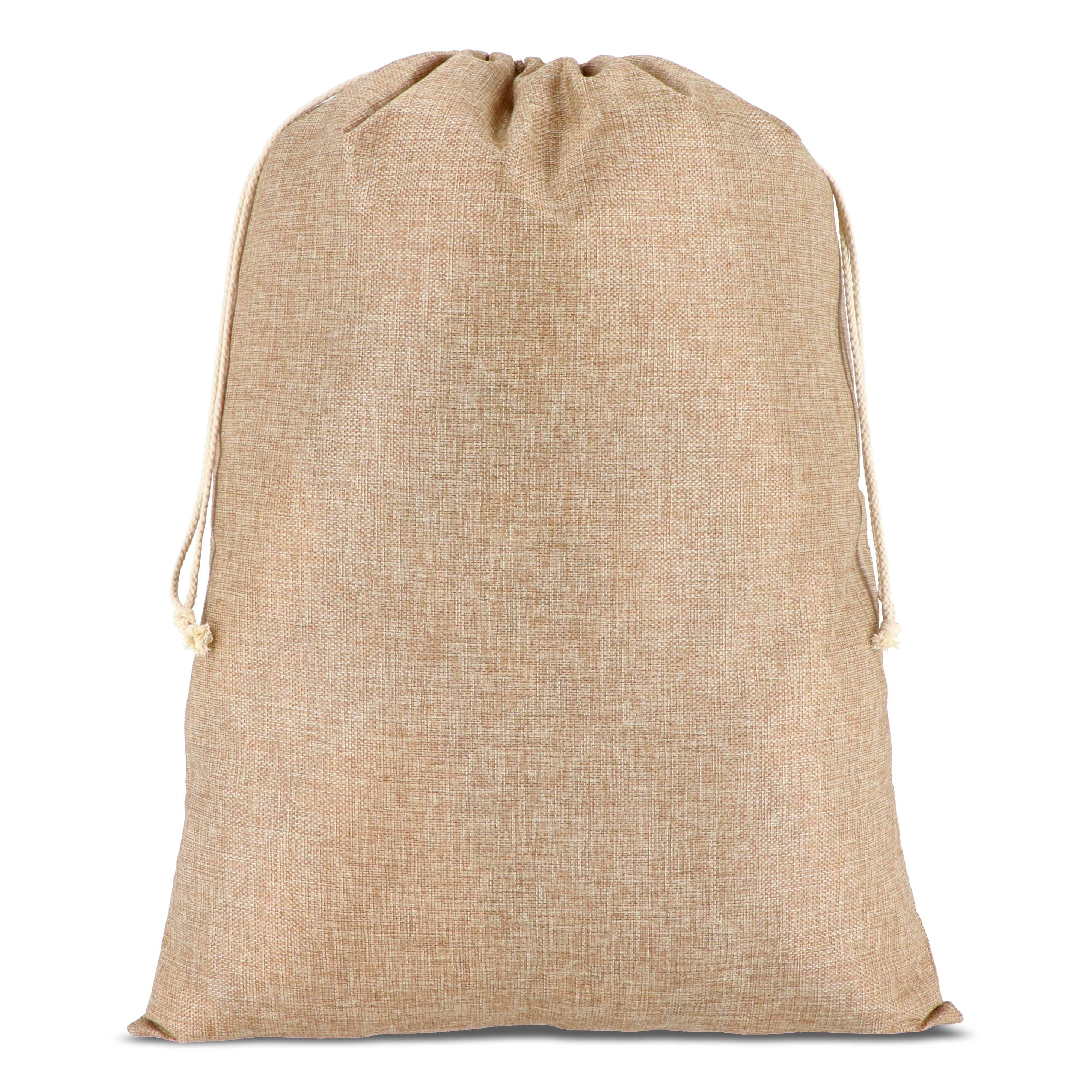 Verpacken Sie Ihre Geschenke in dieser geräumigen Geschenktasche im Jute-Stil mit Kordelzug. Die robuste und wiederverwendbare Tasche eignet sich perfekt für die Aufbewahrung und den Transport von großen Geschenken und verleiht Ihren Festtagen einen rustikalen, festlichen Charme.
