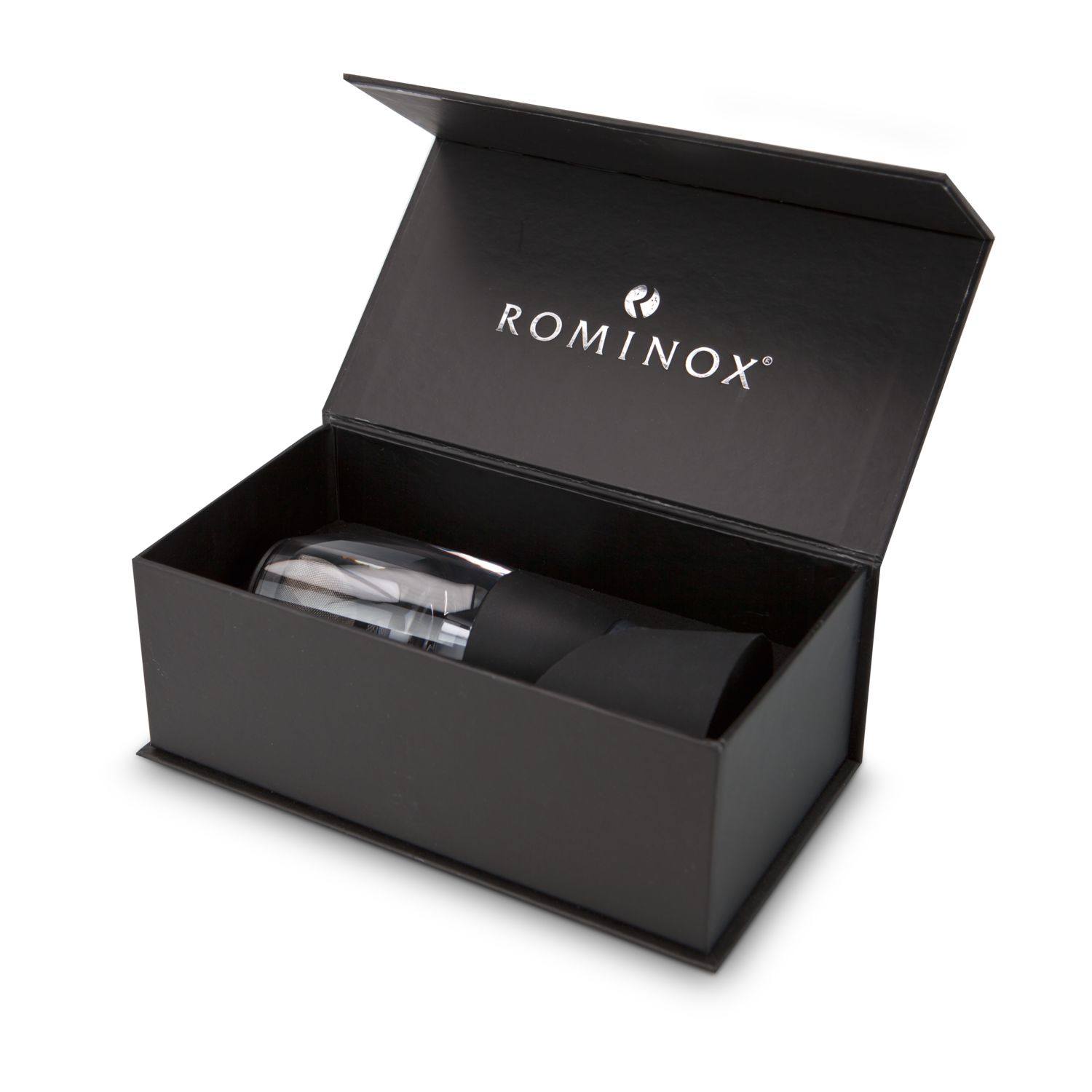 Ein Set für echte Rotwein-Liebhaber: 1 Flasche Cabernet Sauvignon (0,75 l), 2 Rotweingläser, 1 ROMINOX® Weinglashalter aus Holz für Rot- und Weißweingläser und dazu 1 ROMINOX® Weinbelüfter-Set bestehend aus einem praktischen Dekantierausgießer für die Belüftung des Weines während des Ausgießens und einem pfiffigen Vakuum-Pump-Verschluss für längere Haltbarkeit des Weines. Verpackt in einem naturfarbenen Geschenkkarton.