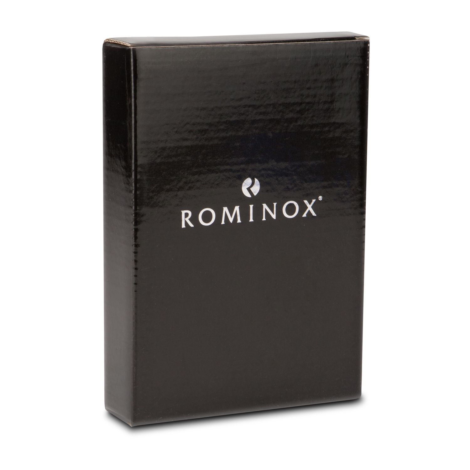 Ein edler Villa Römer Sekt (0,75 l) trocken in schwarz-matter Flasche, kombiniert mit schwarzer Kühlmanschette und Sektverschluss von ROMINOX®. In schwarzem Geschenkkarton.