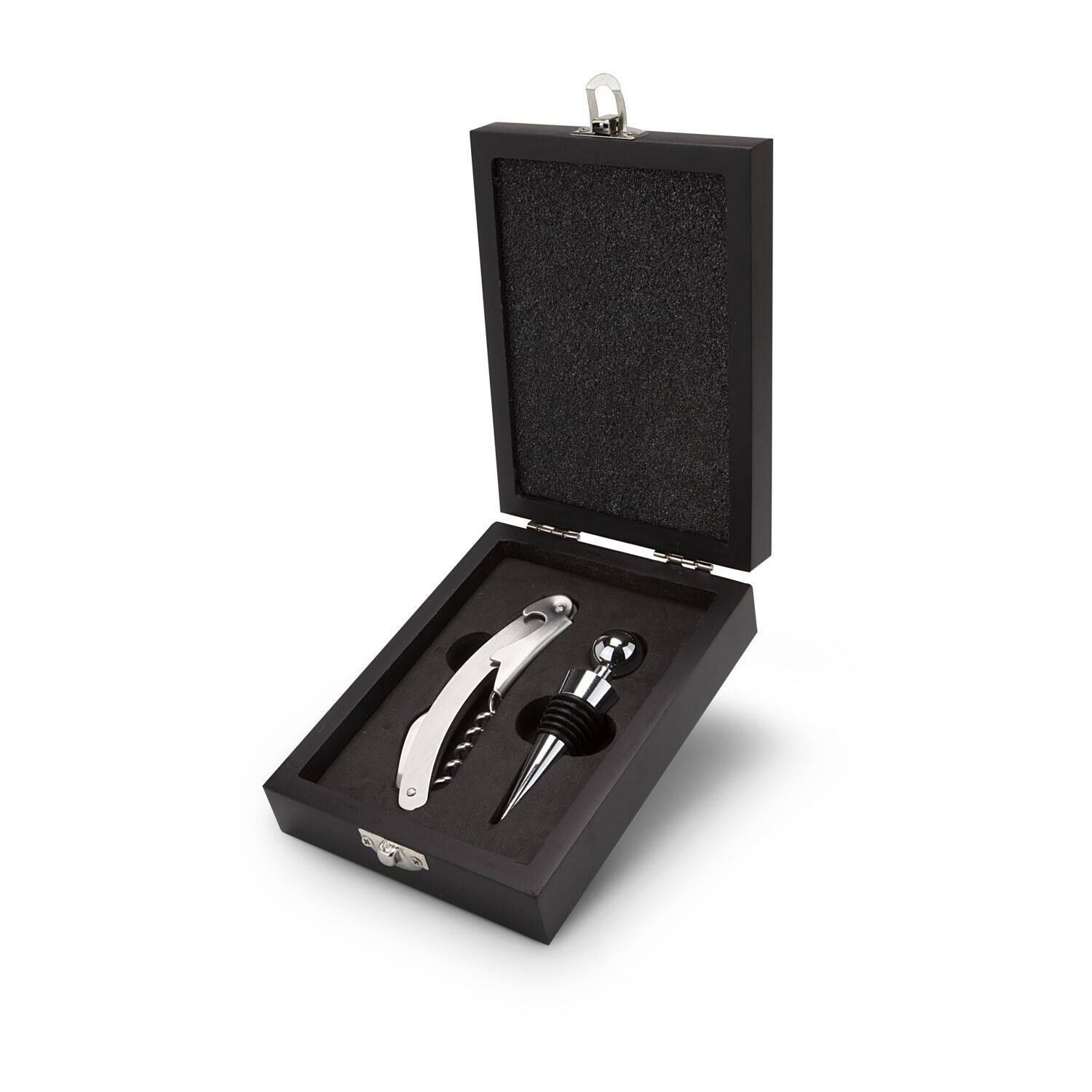 Kombinieren Sie edle Weinmomente mit mediterranem Knuspergenuss: In der hochwertigen, naturfarbenen Geschenkbox mit schwarzem dekorativem Füllmaterial erhalten Sie einen leckeren Rotwein, passendes Weinaccessoire und harmonierende herzhafte Kräcker. Um den charaktervollen Cabernet Sauvignon (0,75 l) in schwarz-weißer Ausstattung fachgerecht zu öffnen und stilvoll zu verschließen, können Sie das ROMINOX® Weinset nutzen. Es besteht aus einem Sommeliermesser aus Edelstahl und einem massiven Flaschenverschluss aus Metall und Silikon. Beide Accessoires können nach Gebrauch wieder in der hochwertigen schwarzen Holzbox aufbewahrt werden. Den Weingenuss begleiten 200 g aromatische Foccacette-Kräcker mit Pomodoro & Oregano, die mit sonnengereiften Tomaten und Kräutern den Gaumen verwöhnen. Alles wird in einer naturfarbenen Geschenkbox überreicht, die ein stimmungsvoller Aufkleber veredelt. Auf Wunsch können Sie den Aufkleber individuell gestalten und / oder die Holzkiste gravieren lassen - ein rundum harmonisches Präsent für Genießer, das Funktion, Geschmack und elegantes Design verschenkt.