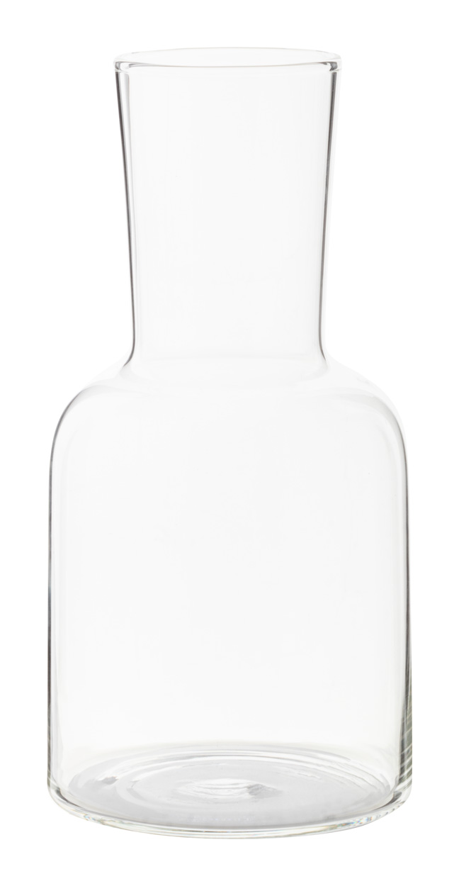 Wasserkaraffe (Füllmenge: 800 ml) und Glas (Füllmenge: 300 ml) aus Borosilikatglas. Geeignet für kalte und warme Getränke, kann auch als Dekanterflasche verwendet werden. Verpackt in Kraftpapierbox.