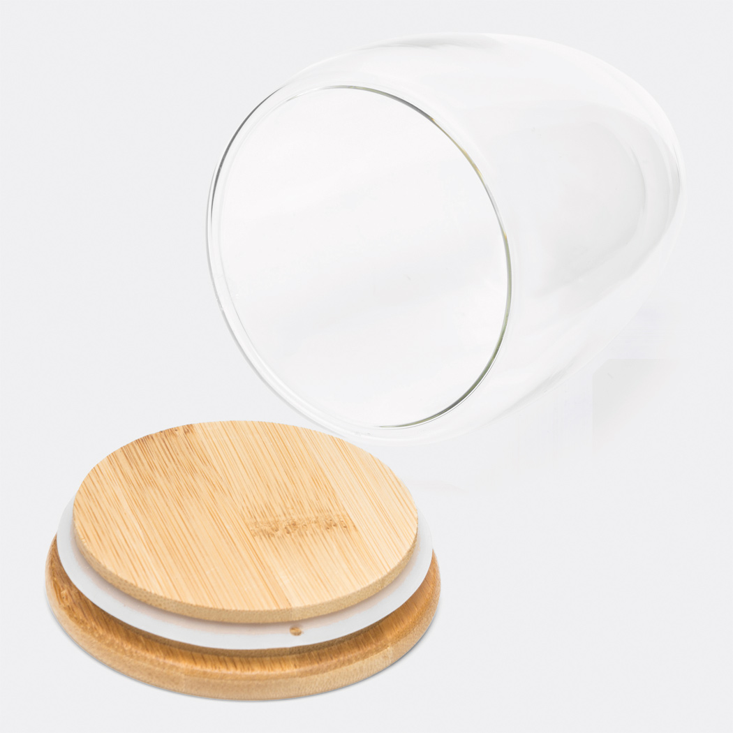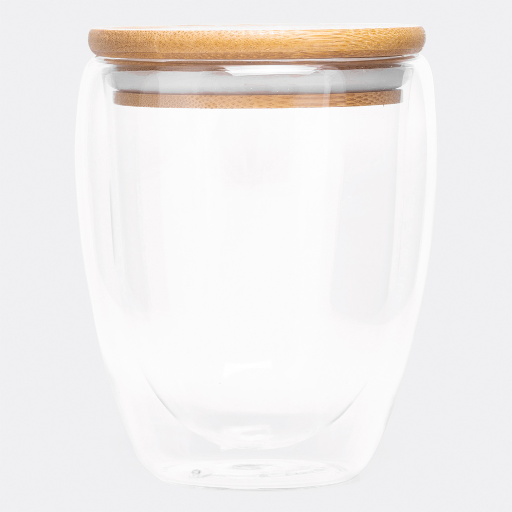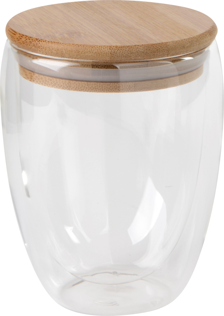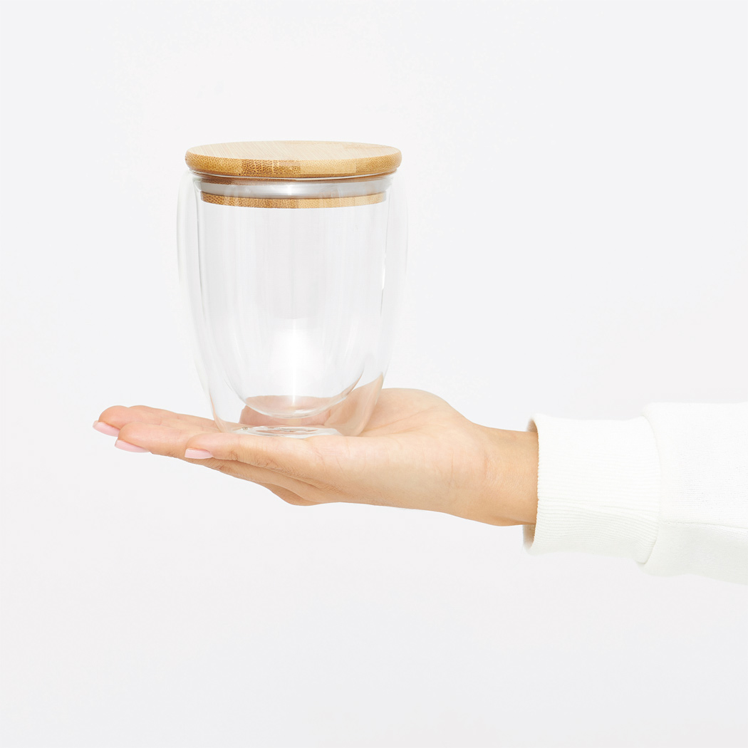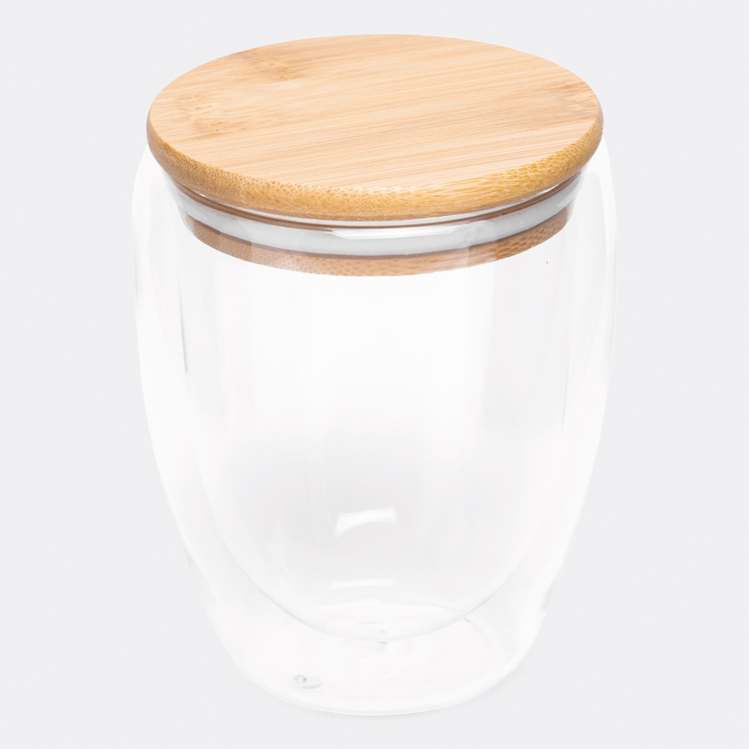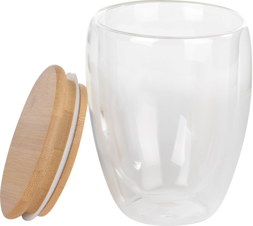 Glas BAMBOO ART M, doppelwandig: Bambusdeckel mit Silikon-Dichtring, transparent, temperaturbeständig, Füllmenge ca. 350 ml