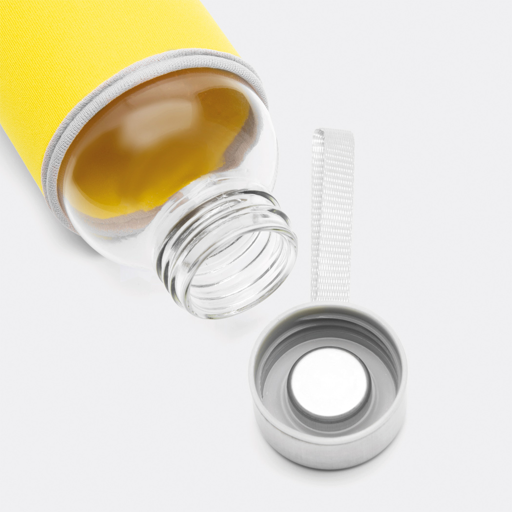Glasflasche 500ml mit farbiger Neoprenhülle, der...