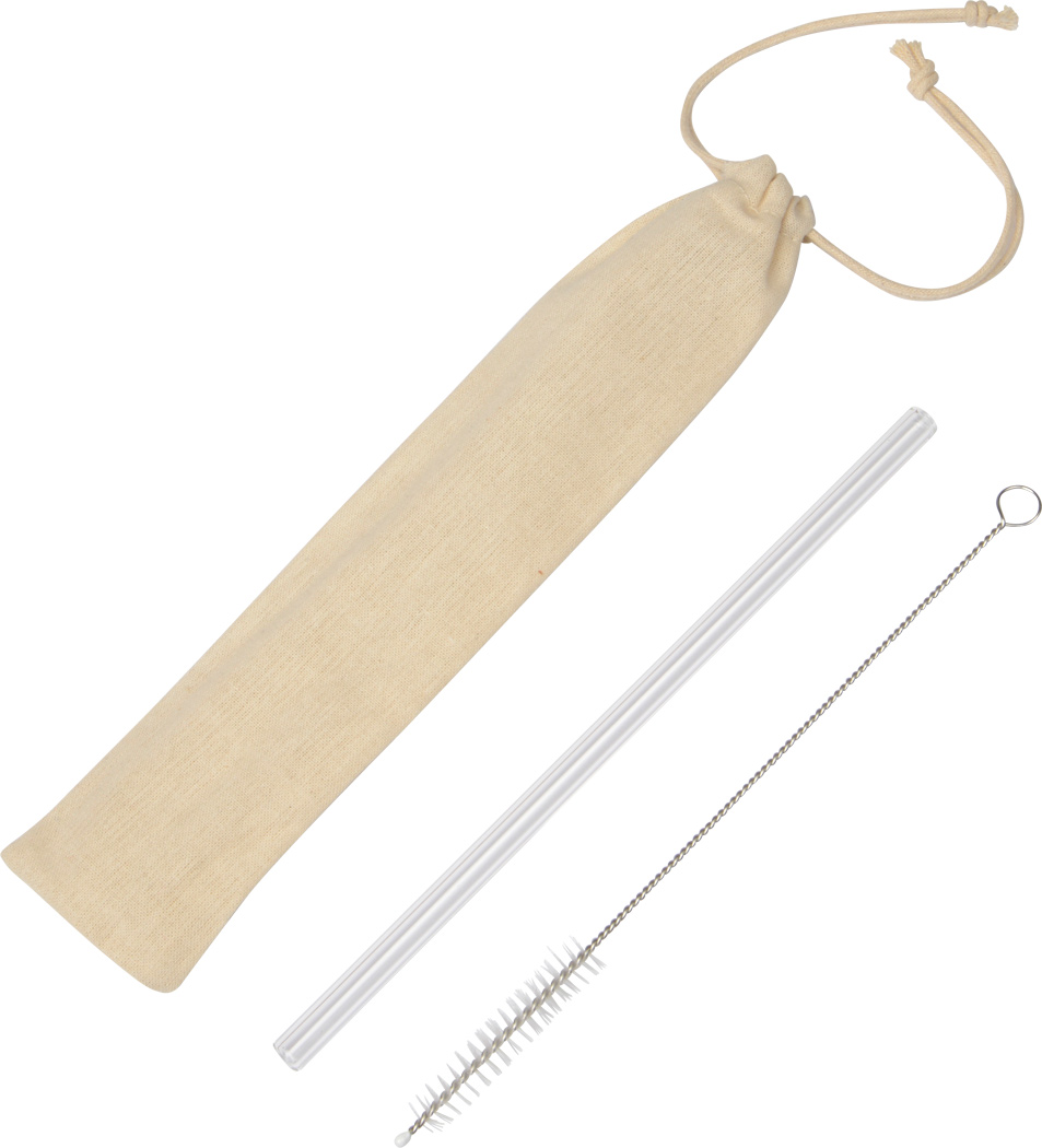 Glas-Strohhalm DRINK SMART, 2-teilig: bestehend aus transparentem Trinkhalm, inkl. Bürste für eine bequeme Reinigung, im umweltfreundlichen Baumwollbeutel