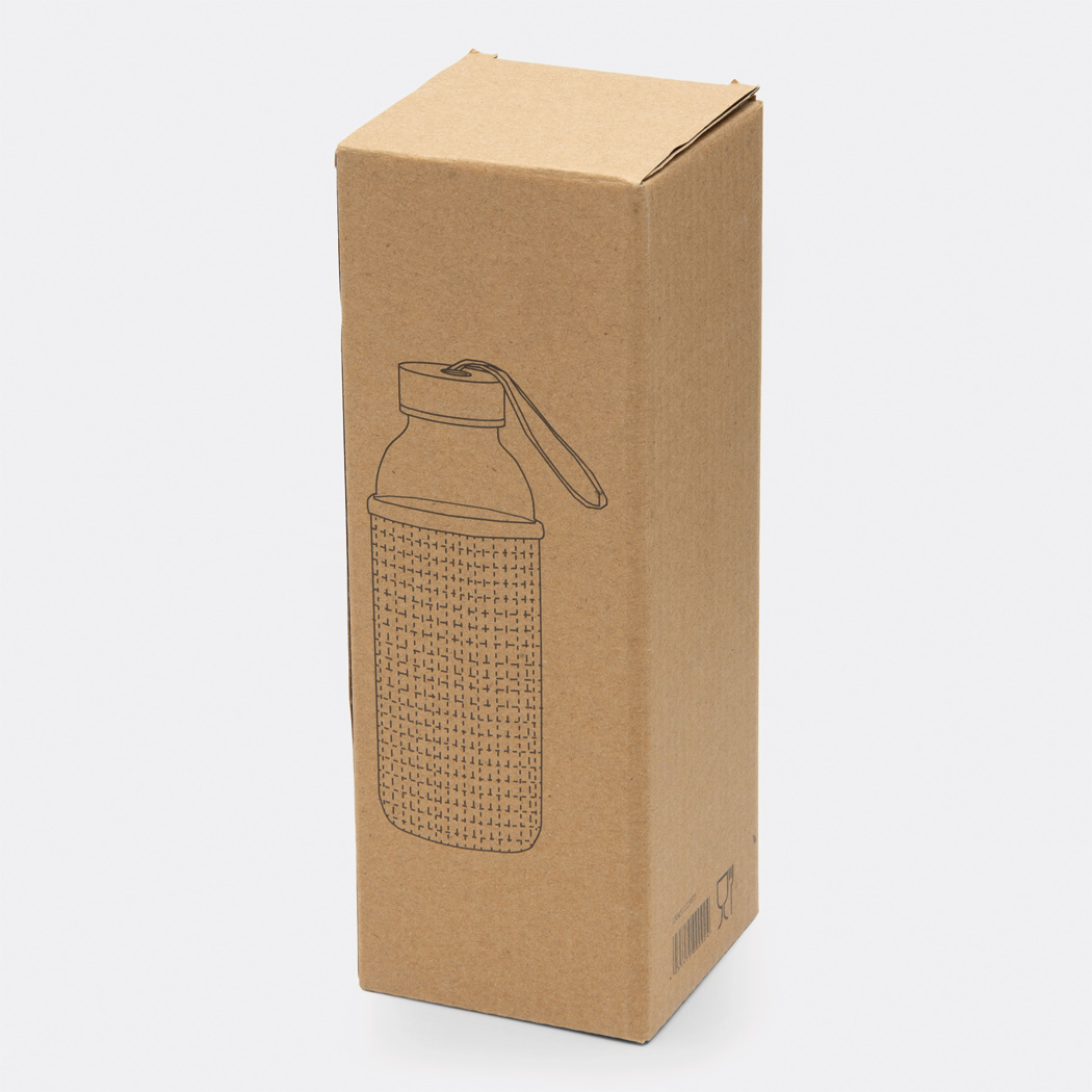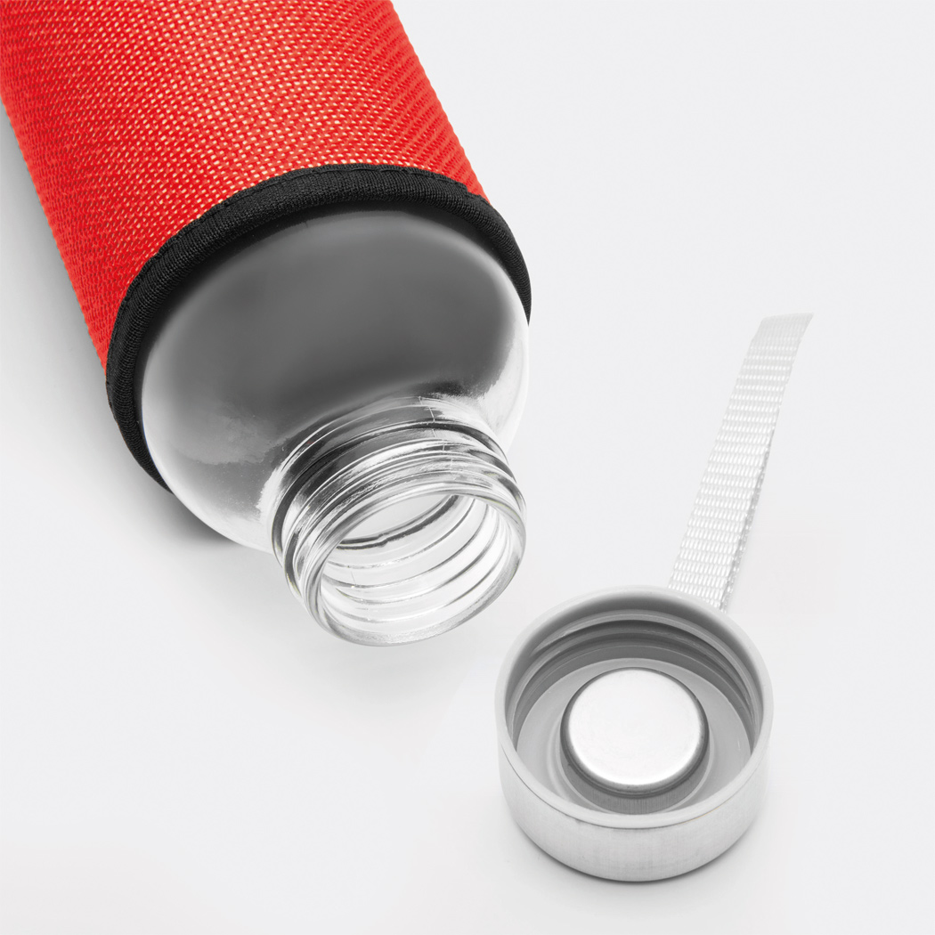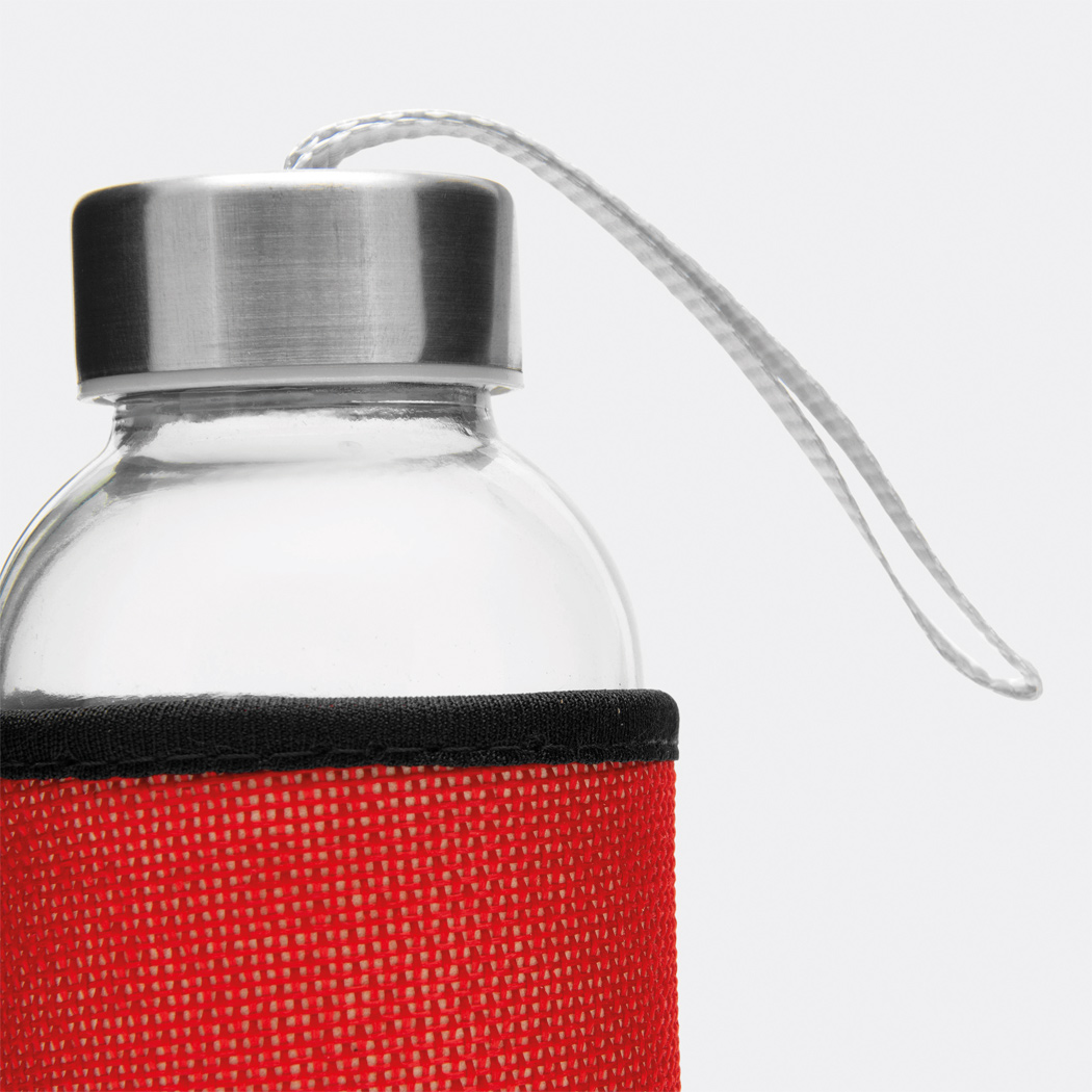 Glas-Trinkflasche TAKE JUTY: Edelstahldeckel mit Schraubverschluss, Silikon-Dichtring und Handschlaufe, inkl. farbiger Schutzhülle aus Jute, Füllmenge ca. 450 ml, in Geschenkbox