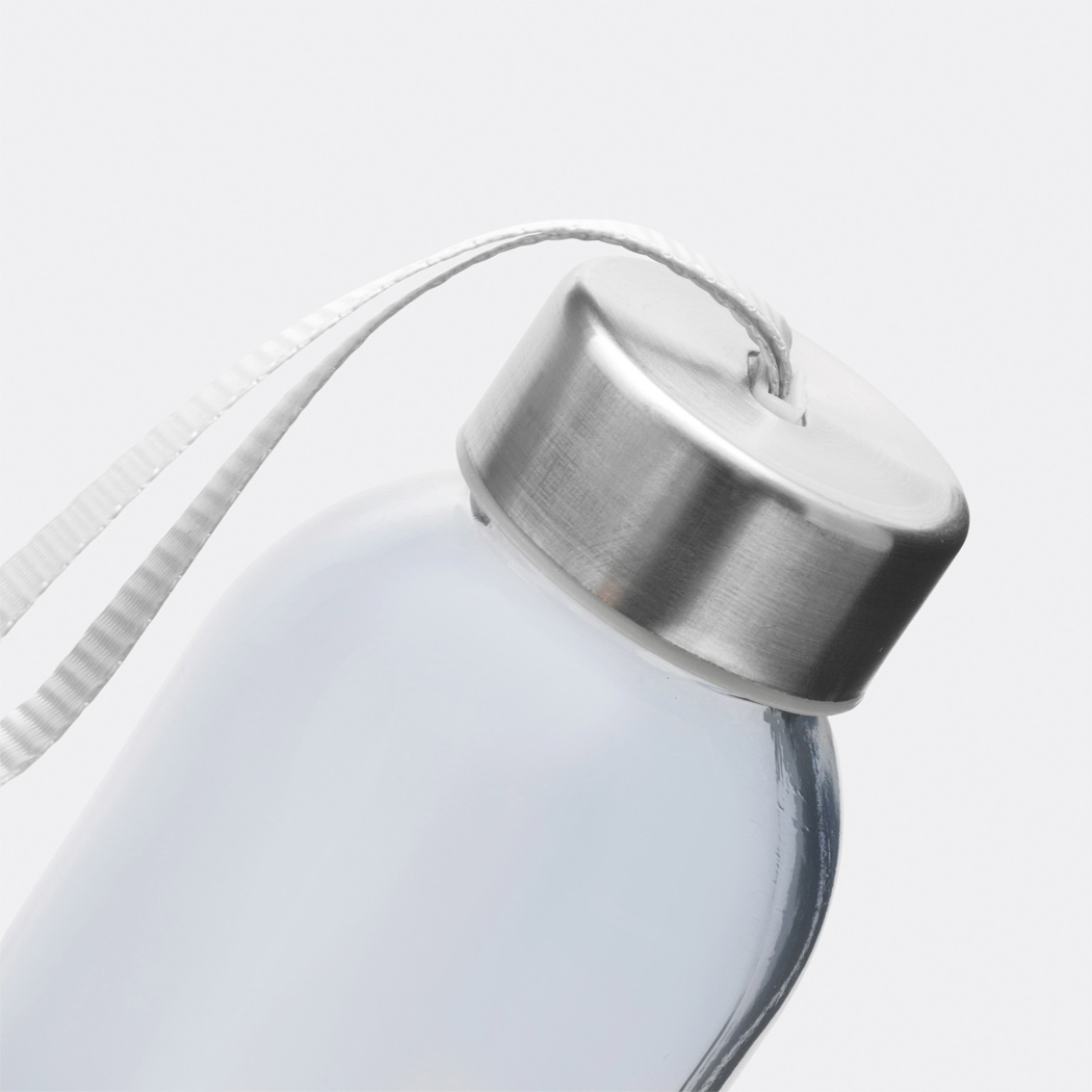 Glas-Trinkflasche TAKE SMART: Edelstahldeckel mit Schraubverschluss, Silikon-Dichtring und Handschlaufe, Füllmenge ca. 500 ml, in Geschenkbox