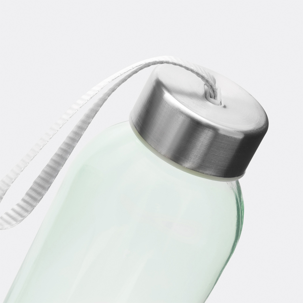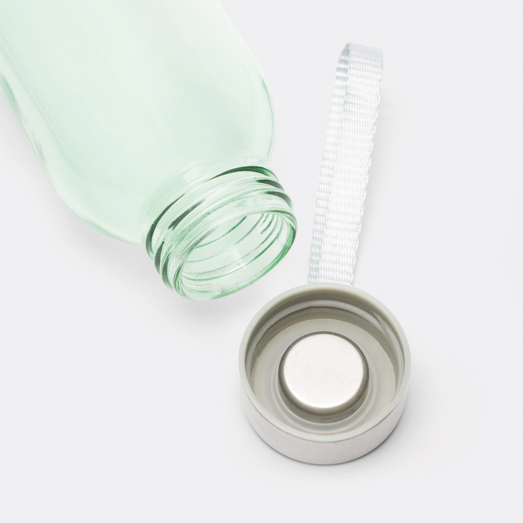 Glas-Trinkflasche TAKE SMART: Edelstahldeckel mit Schraubverschluss, Silikon-Dichtring und Handschlaufe, Füllmenge ca. 500 ml, in Geschenkbox