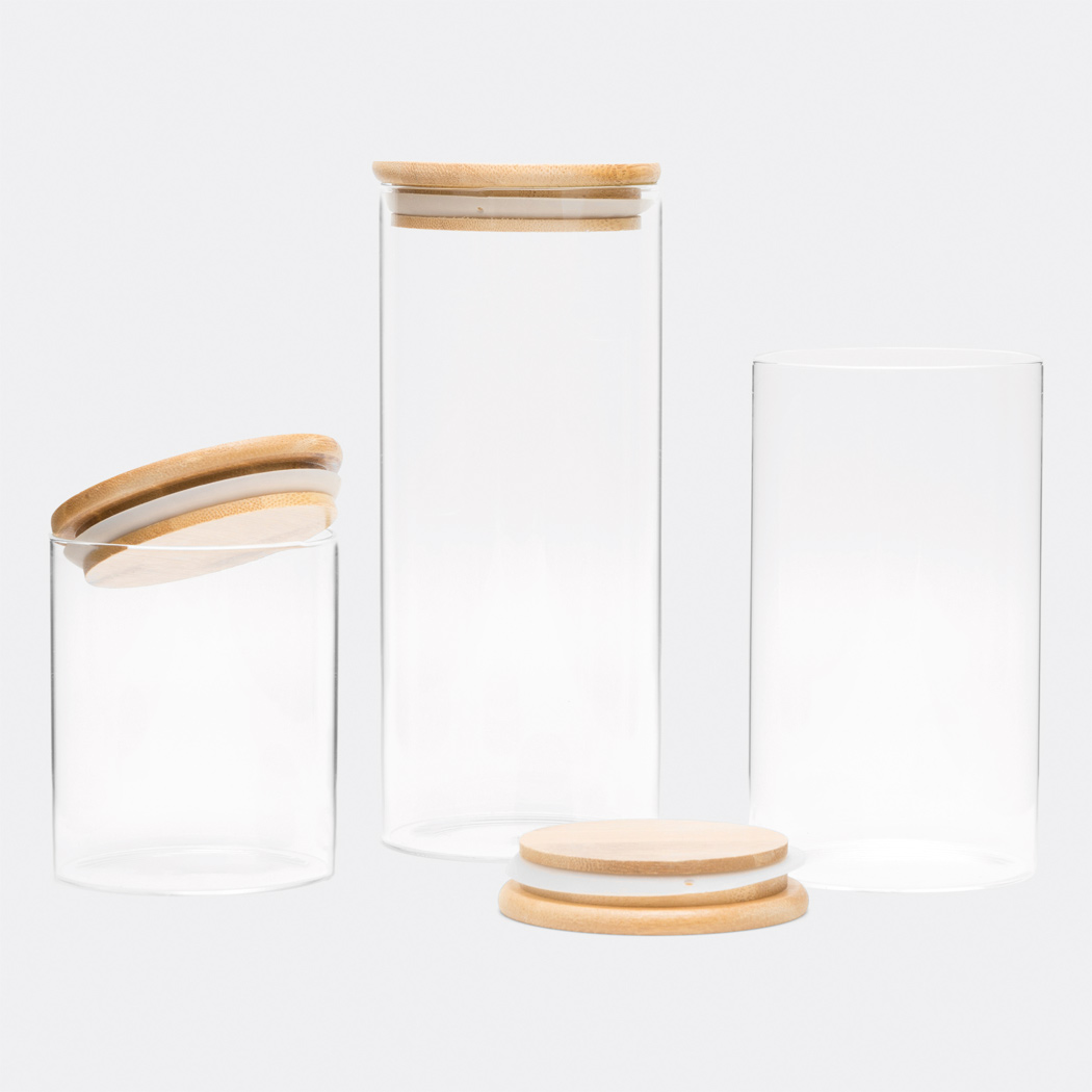 Dose aus Borosilikatglas mit Bambusdeckel, 700ml