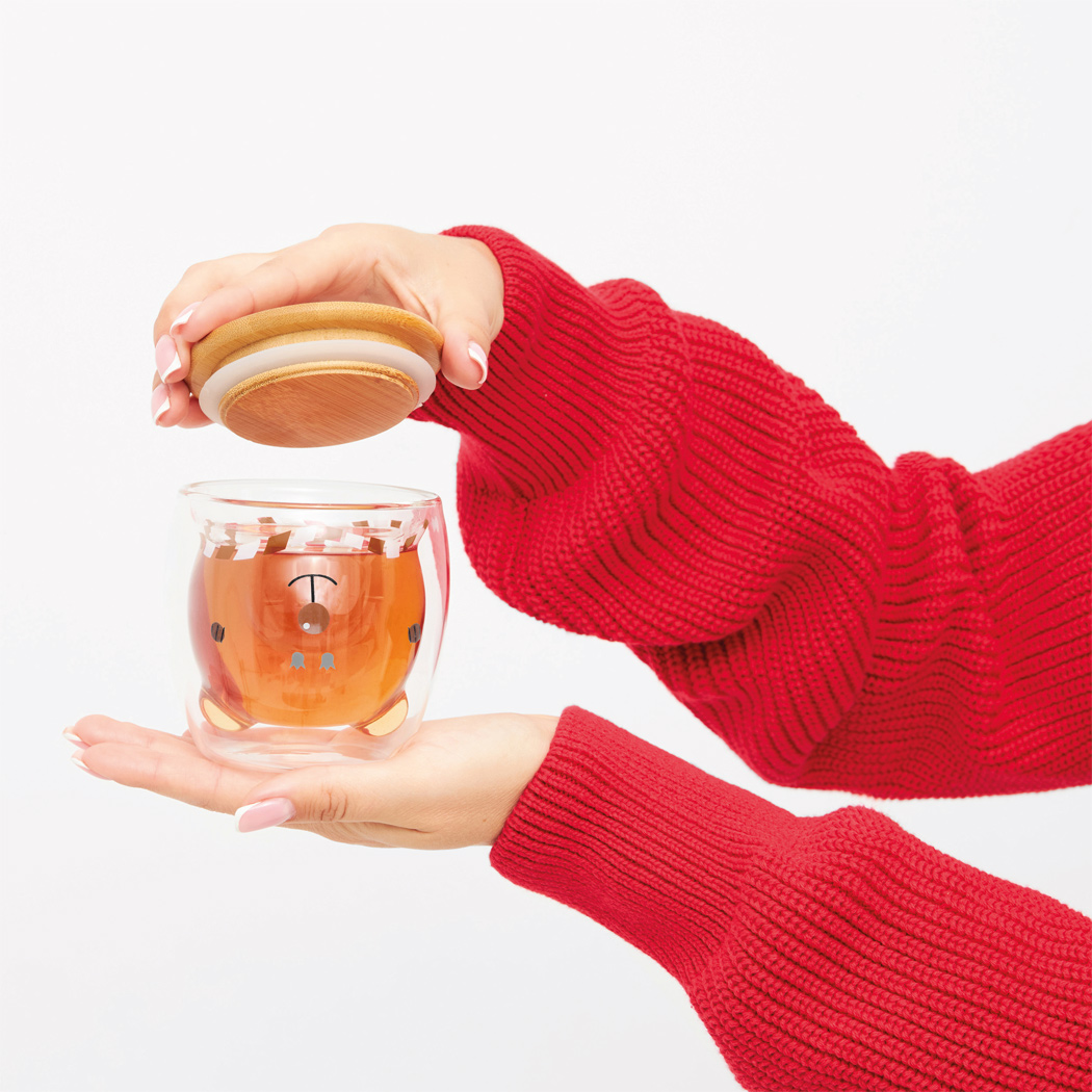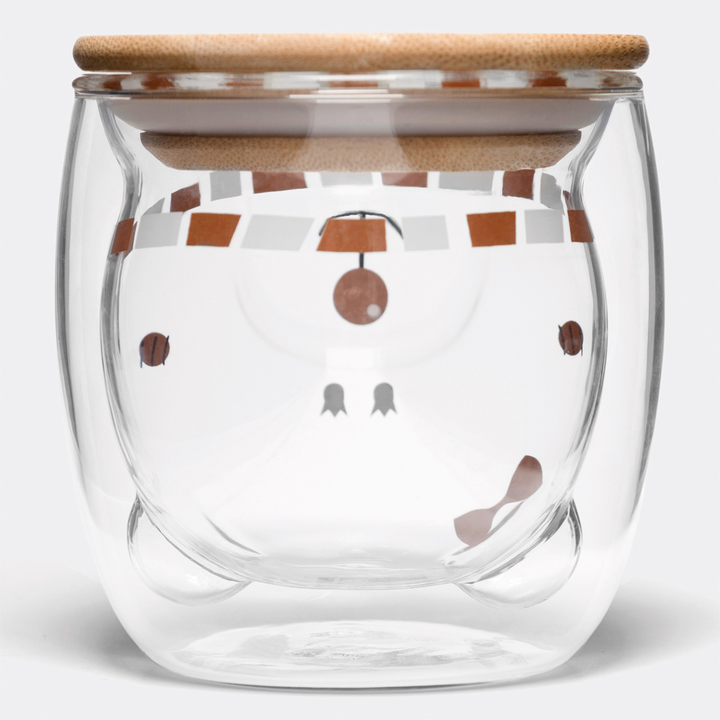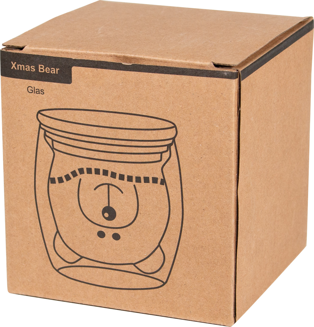 Glas XMAS BEAR, doppelwandig: Bambusdeckel mit Silikon-Dichtring, transparent, temperaturbeständig, Bärengesichtsform mit brauner Nase und Schal, Füllmenge ca. 250 ml, in Box