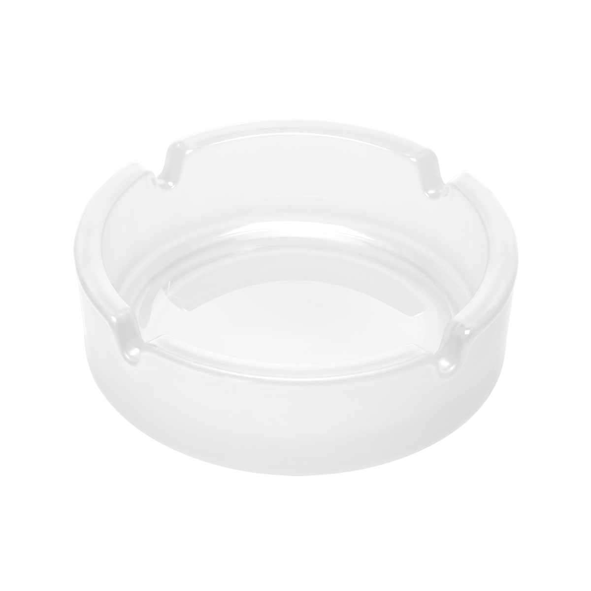 Glasaschenbecher mit vier Zigaretten-Ablagen; Druck ist nicht spülmaschinenfest.