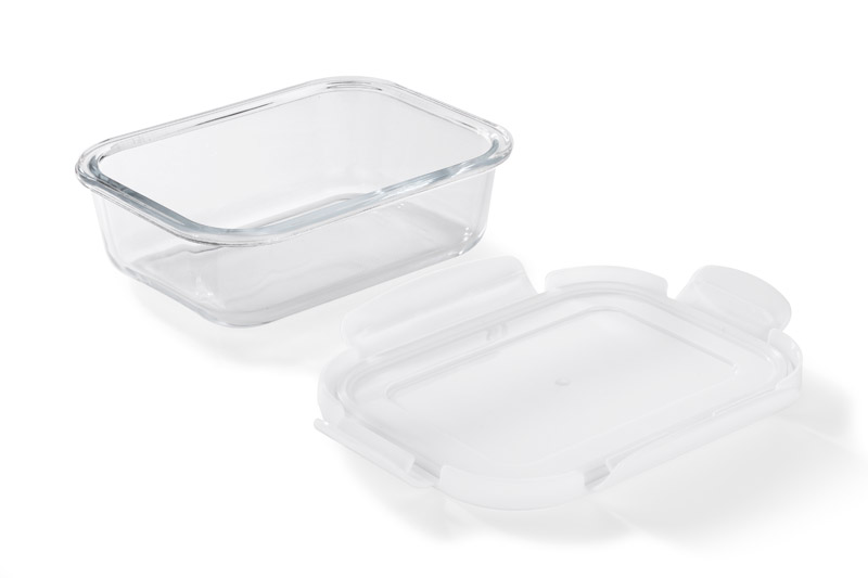 Der Lebensmittelbehälter LASO besteht aus hochwertigem Borosilikatglas, in anderen Worten: er ist hitzebeständig. Der Behälter hat einen weißen Kunststoffdeckel, der mit vier Verschlüssen verschlossen ist. Er kann als Lunchbehälter, als Vorratsbehälter für Lebensmittel und zum Erhitzen von Speisen im Ofen verwendet werden. Volumen von 500 ml.