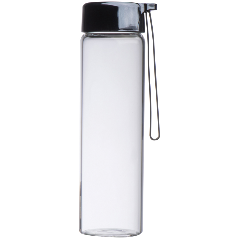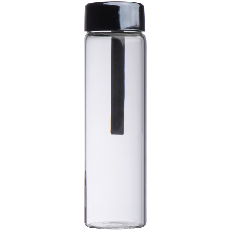 Auslaufsichere Glasflasche mit PP-Deckel und einem Fassungsvolumen von 450 ml. Ihre Werbung drucken wir auf die Glasflasche.