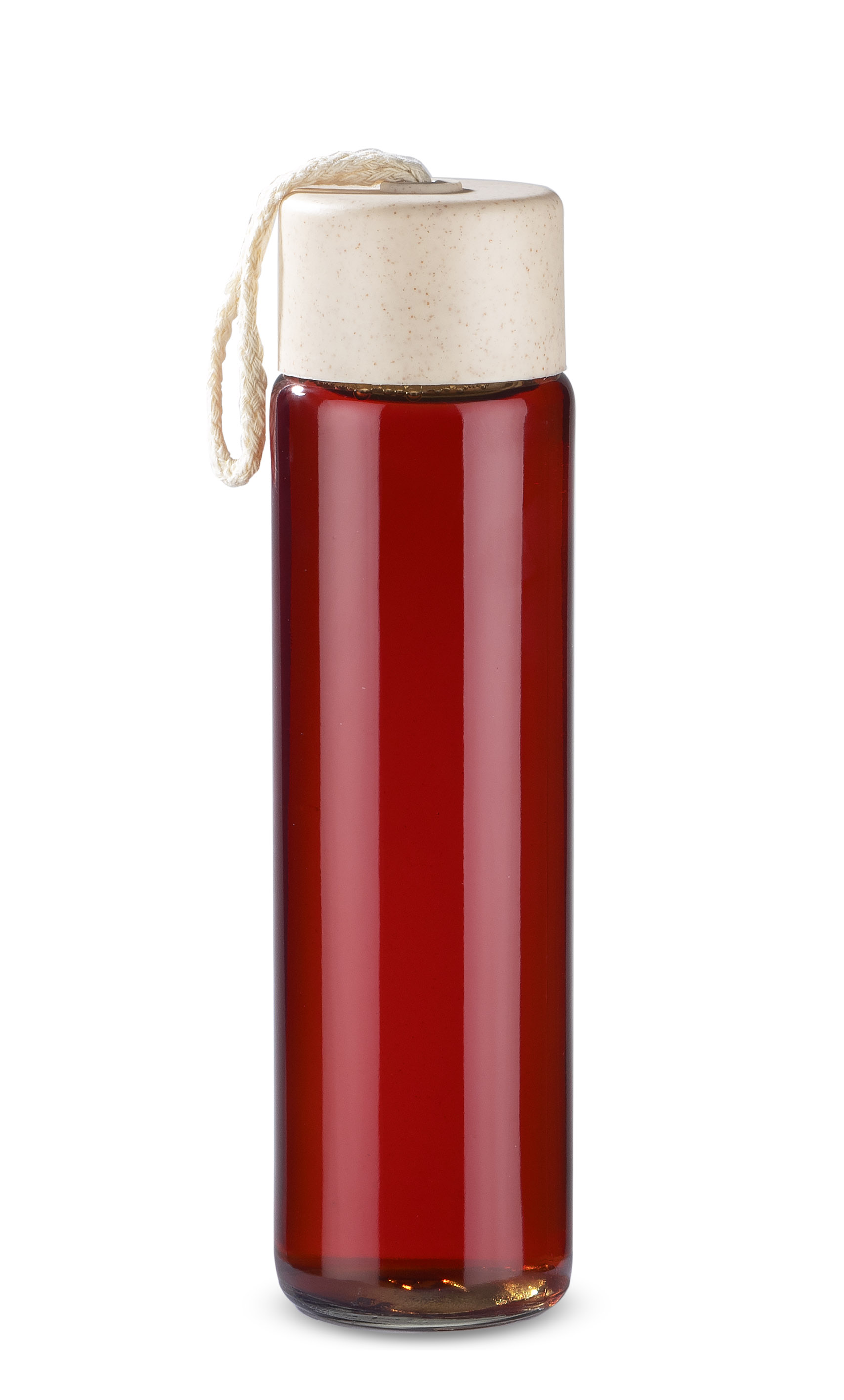 Die SKINNY-Glasflasche in praktischer Größe und 350 ml Fassungsvermögen ist eine großartige Alternative zu Plastikflaschen. Es hat eine Kappe mit Schnur zur einfachen Handhabung. Die Kappe besteht aus Kunststoff mit Weizenstroh. Der Flakon hat ein modisches, minimalistisches Aussehen.