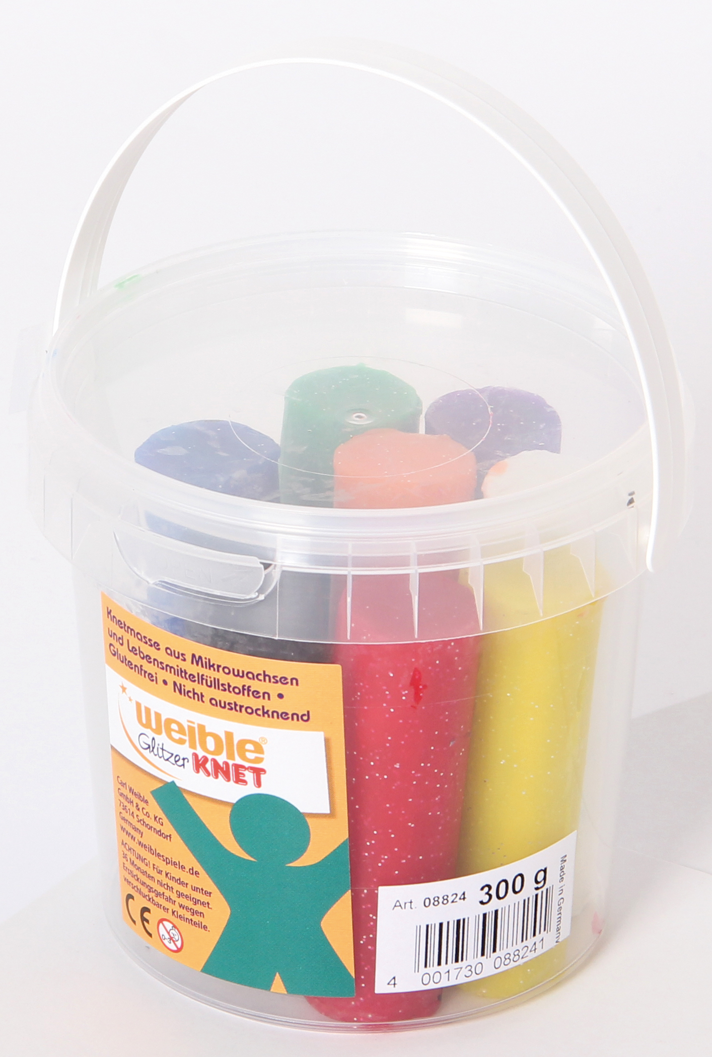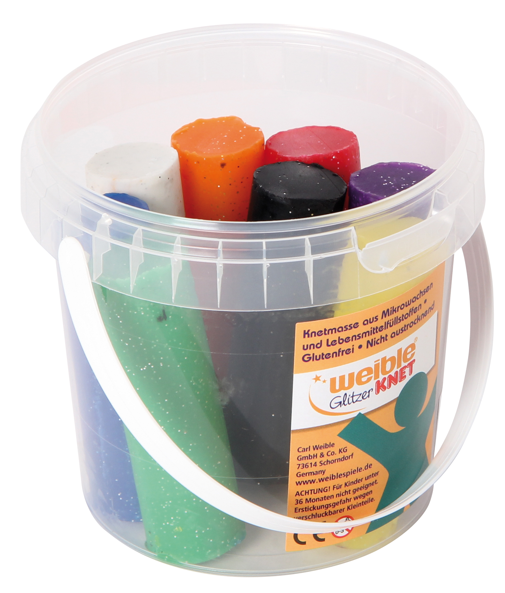 Glitzerknete aus Mikrowachsen und Lebensmittelfüllstoffen in 8 verschiedenen Farben. Die gesundheitlich unbedenkliche Knetmasse wird seit mehr als 100 Jahren in Deutschland aus Mikrowachsen, Kartoffelstärke und Farben in hoher Qualität hergestellt. Sie ist glutenfrei und nicht austrocknend.