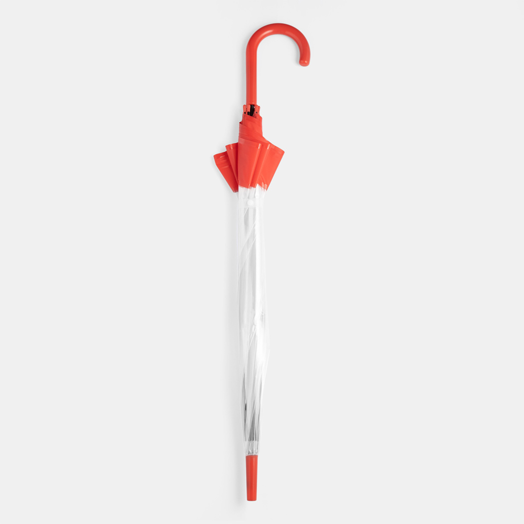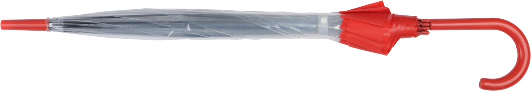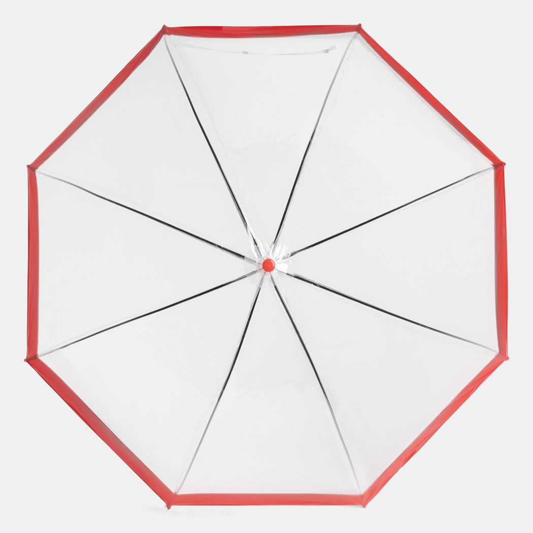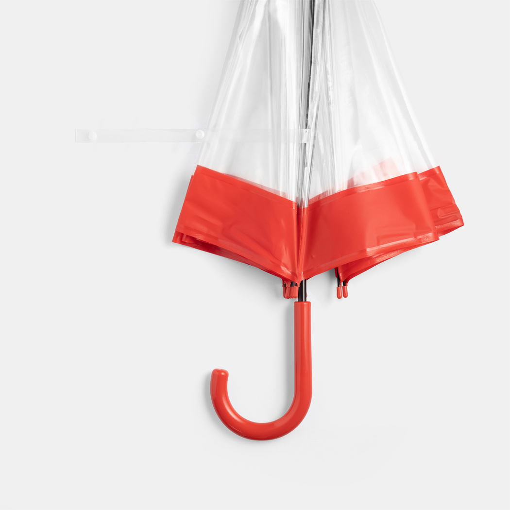 Glockenschirm HONEYMOON: Metallstock und –speichen, Kunststofftips und –spitze, Kunststoffrundhakengriff, transparente POE-Bespannung mit farbiger Bordüre, Schließband mit Druckknopf