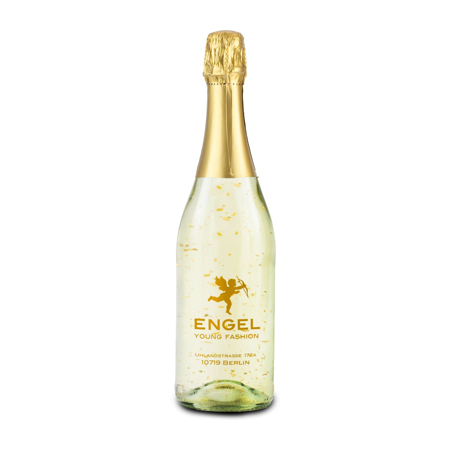 0,75 l - Aromatisiertes, schaumweinhaltiges Getränk mit 22-karätigem, lebensmittelechtem Blattgold in edler 0,75 l Sektflasche mit Naturkork und Agraffe, Alkohol 11% Vol. inklusive 1,02 € Schaumweinsteuer in Deutschland! - Kapselfarbe Gold