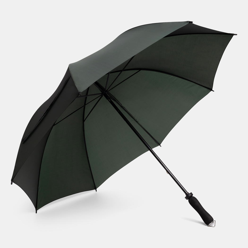 Golfschirm mit Tragefutteral MOBILE: Metallstock, Doppelmetallspeichen mit Polyester-Bespannung und Kunststofftips, Moosgummigriff, Schließband mit Klettverschluss