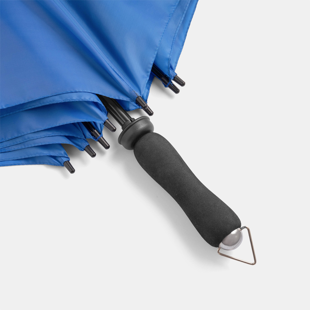 Golfschirm mit Tragefutteral MOBILE: Metallstock, Doppelmetallspeichen mit Polyester-Bespannung und Kunststofftips, Moosgummigriff, Schließband mit Klettverschluss