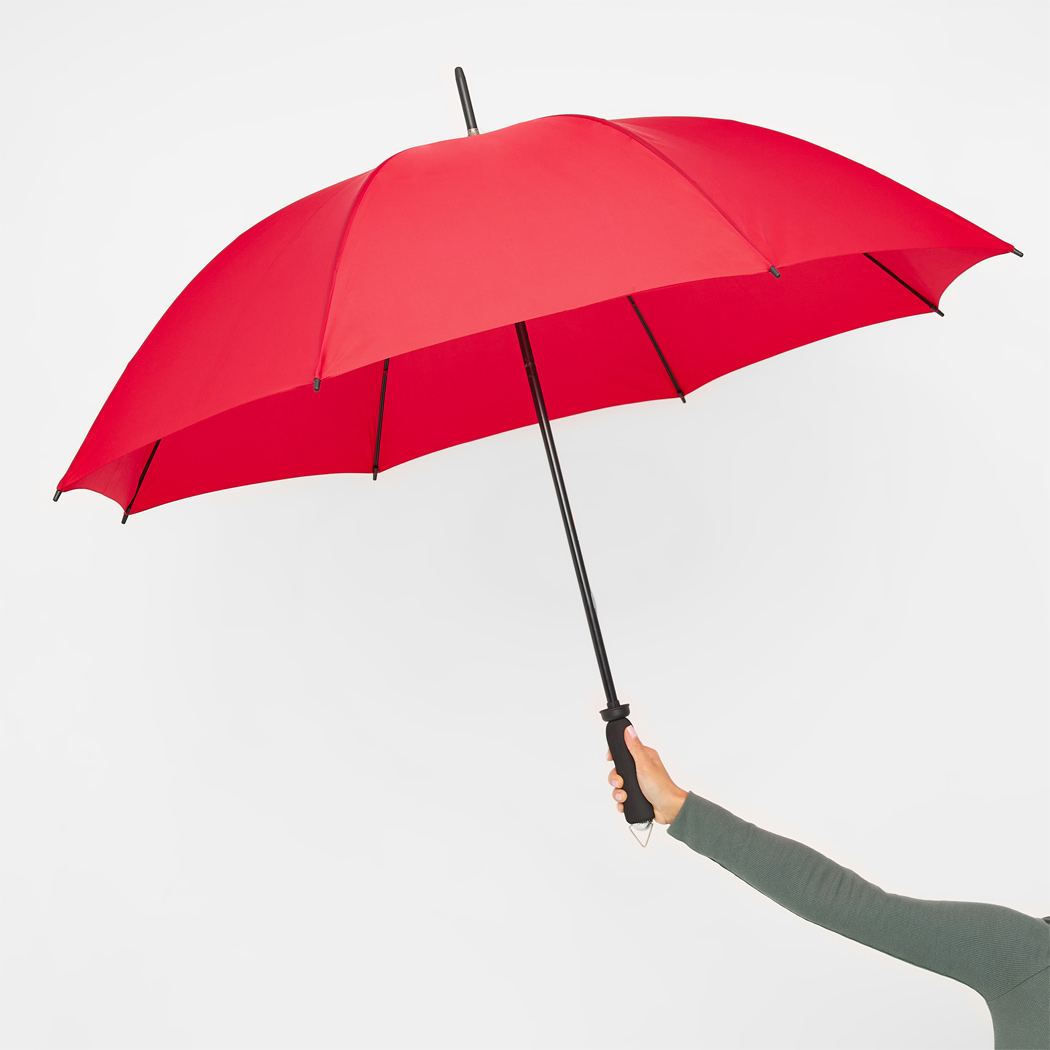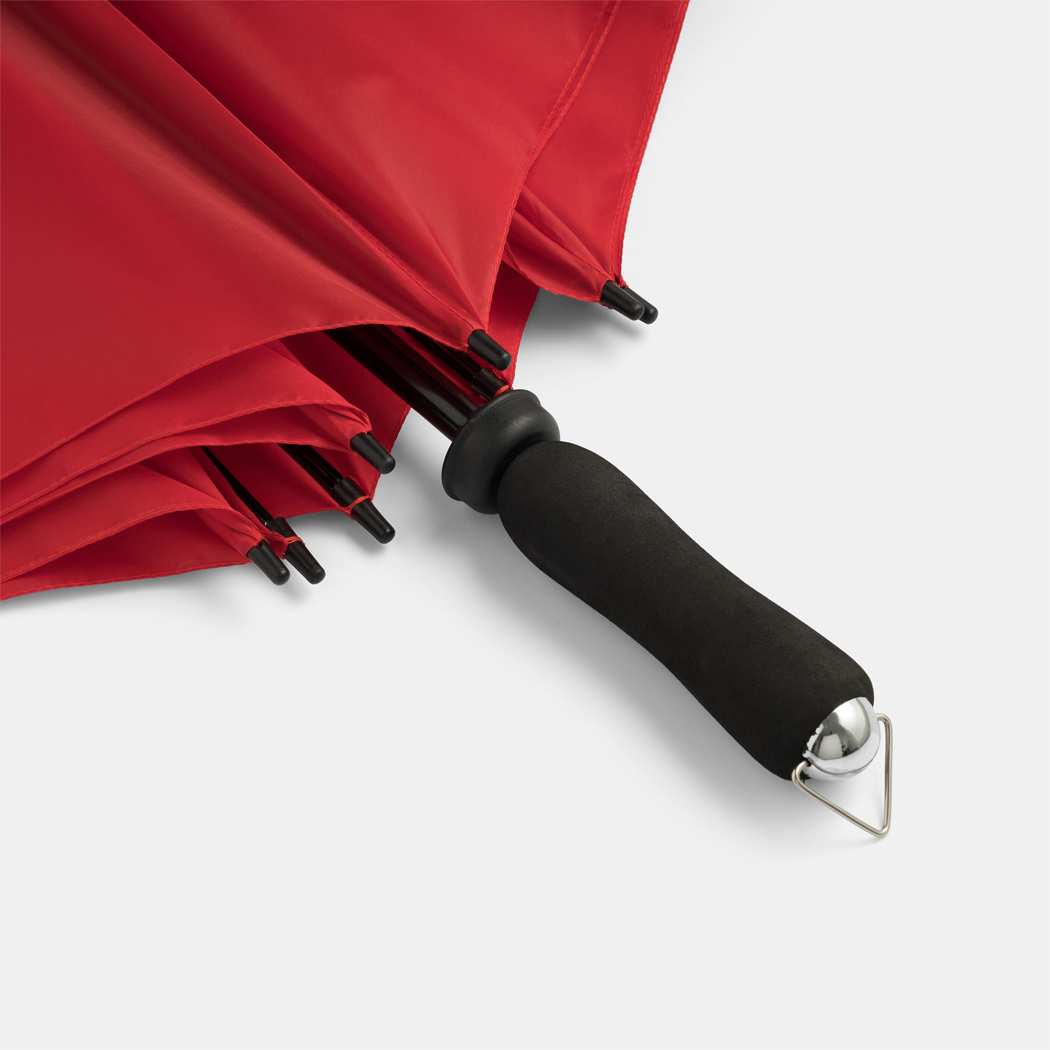 Golfschirm mit Tragefutteral MOBILE: Metallstock, Doppelmetallspeichen mit Polyester-Bespannung und Kunststofftips, Moosgummigriff, Schließband mit Klettverschluss