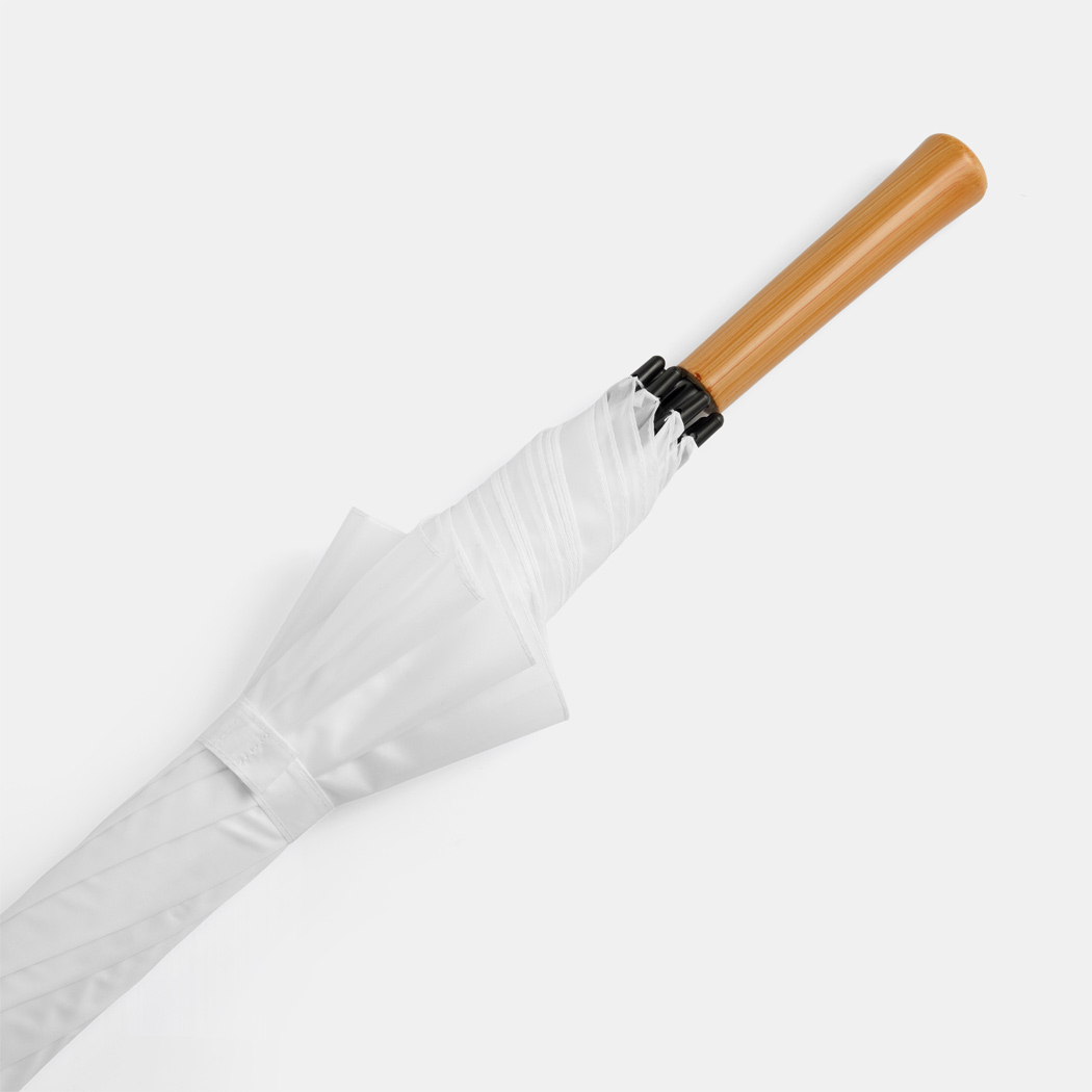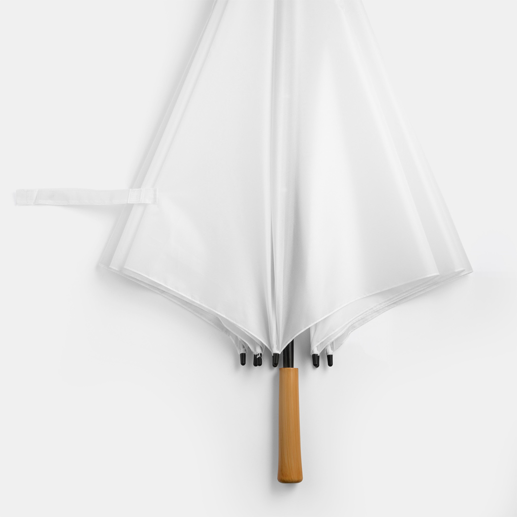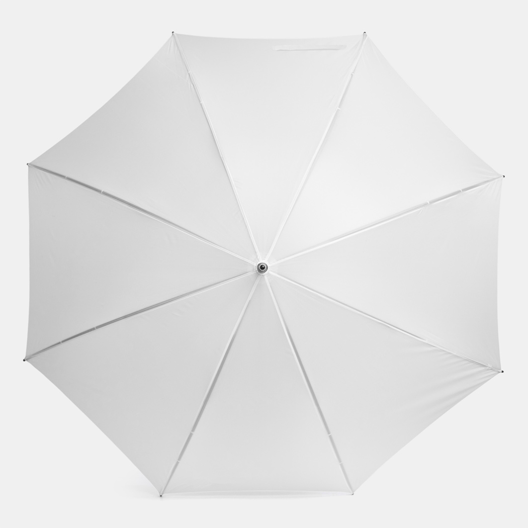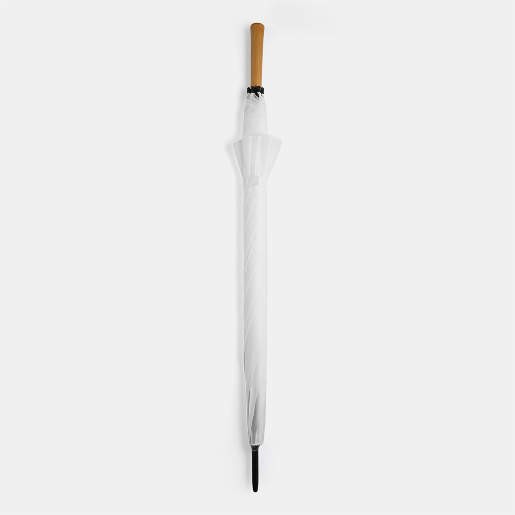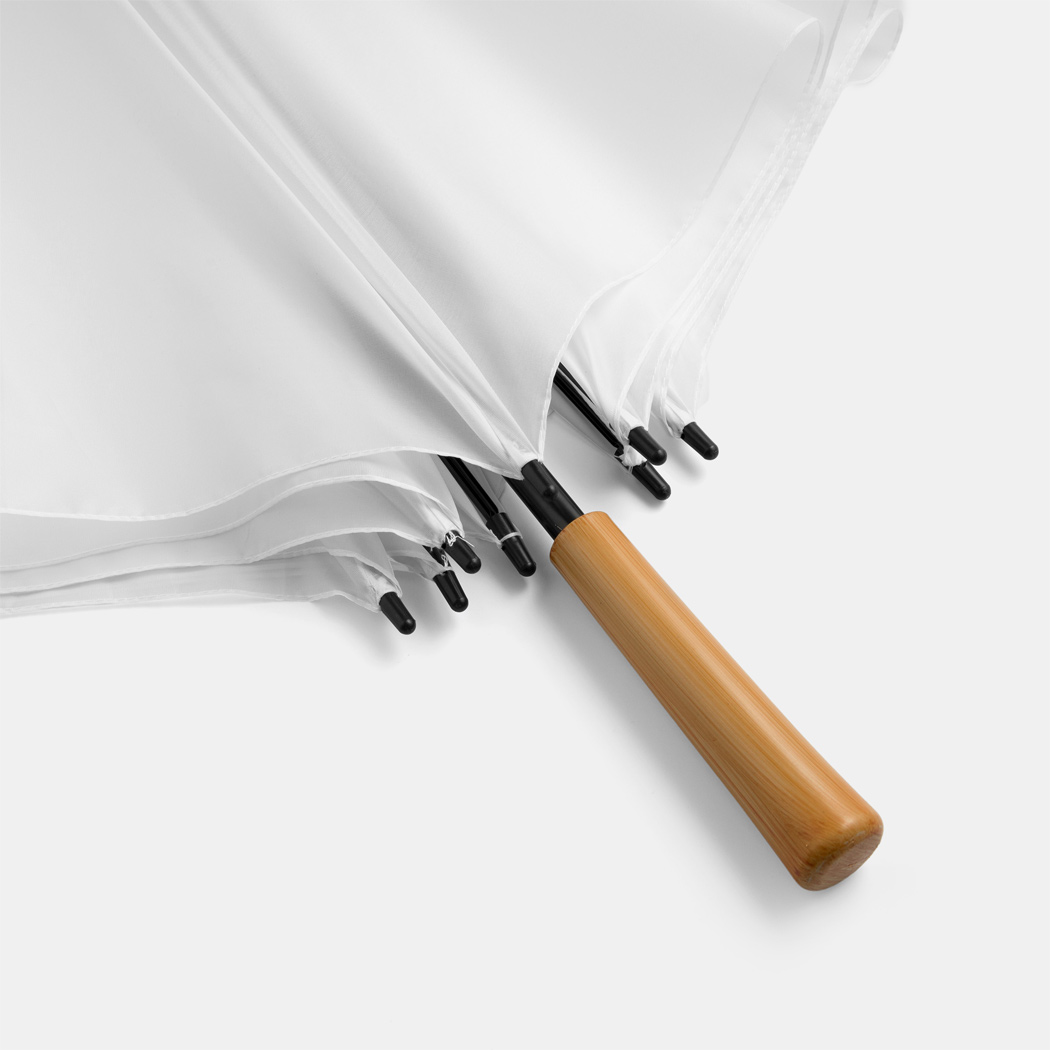 Golfschirm RAINDROPS: Metallstock und Doppelmetallspeichen, Kunststofftipps, Griff in Holz-Optik, Polyester-Bespannung, Schließband mit Klettverschluss