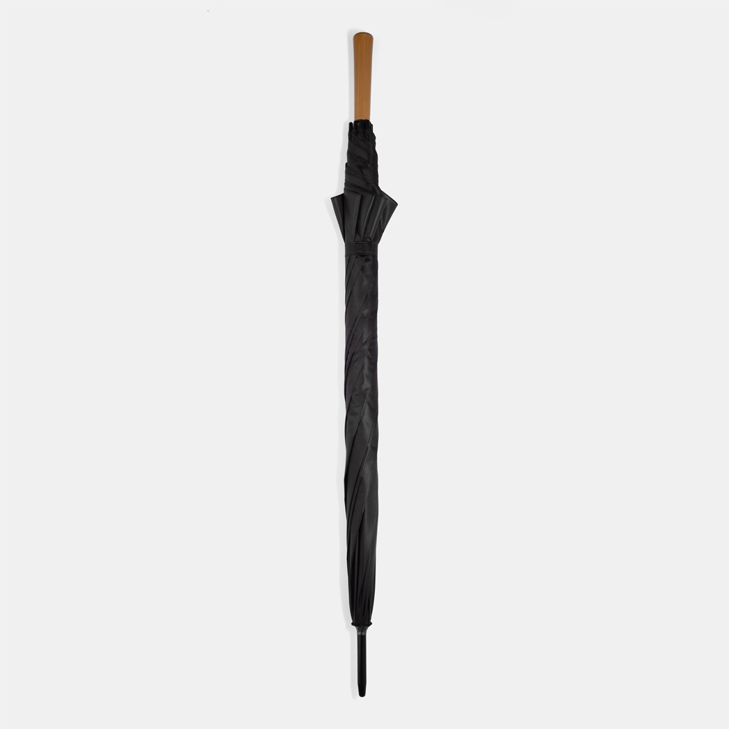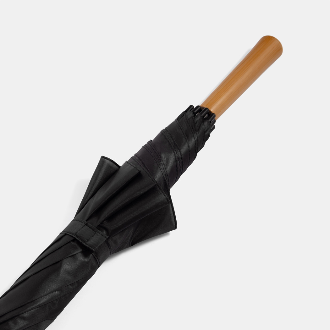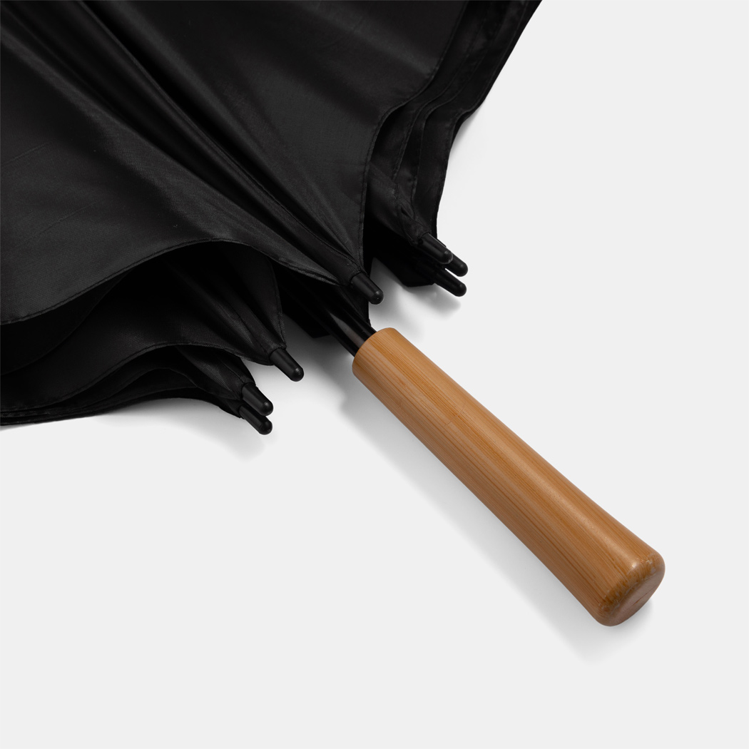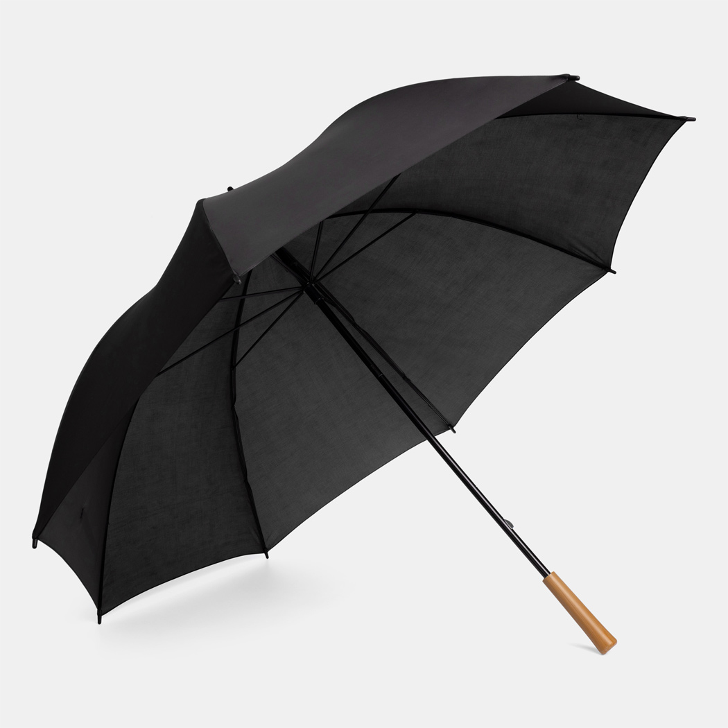 Golfschirm RAINDROPS: Metallstock und Doppelmetallspeichen, Kunststofftipps, Griff in Holz-Optik, Polyester-Bespannung, Schließband mit Klettverschluss