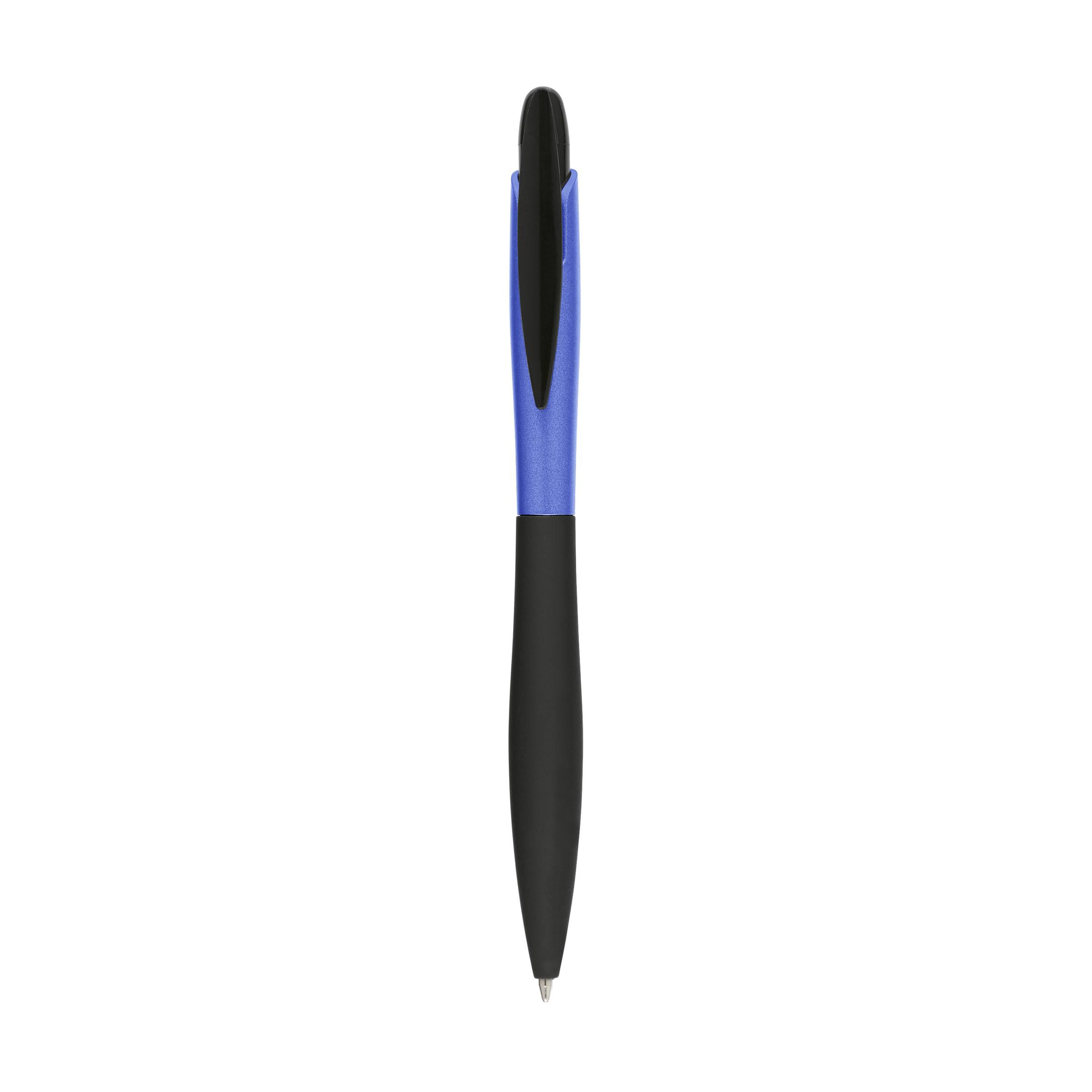 Beschreibung: Blauschreibender, schlanker Kugelschreiber mit grifffestem, gummiertem Vorderteil.