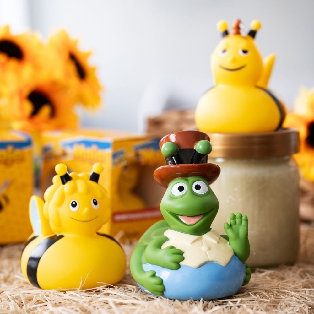 Grashüpfer Flip ist ein wahres Energiebündel! Als fröhlicher Begleiter von "Die Biene Maja" begeistert er mit seinem verschmitzten Lächeln und seiner verspielten Haltung. Dieses offizielle Lizenzprodukt fängt die Persönlichkeit von Flip perfekt ein – stets gut gelaunt und bereit für das nächste Abenteuer. Sein grünes Design mit den langen Beinen macht ihn unverwechselbar und bringt Schwung in jede Sammlung. Flip kann zudem mit einem Logo oder einer Werbebotschaft bedruckt werden, sodass er nicht nur als liebevolles Geschenk, sondern auch als sympathisches Werbemittel überzeugt. Fragen Sie direkt nach unseren Veredelungsmöglichkeiten und machen Sie Flip zu Ihrem individuellen Markenbotschafter! © Studio 100 Animation ® Studio 100 Nach Waldemar Bonsels "Die Biene Maja" studio100. com