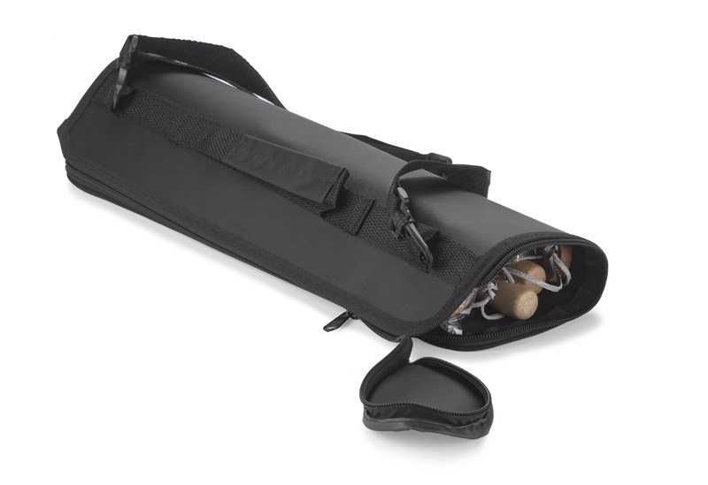 Das Grillset RIVA im Polyesteretui enthält 10 Teile mit Holzgriffen: 2 Spieße, Zange, Spatel, Gabel und 4 Maiskolbenhalter.
