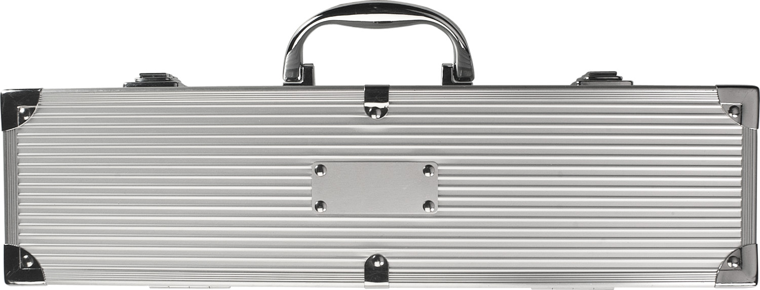Grillset aus Metall im Aluminiumkoffer, 3-tlg. bestehend aus Zange, Wender und Fleischgabel.