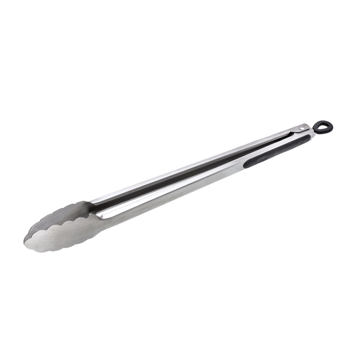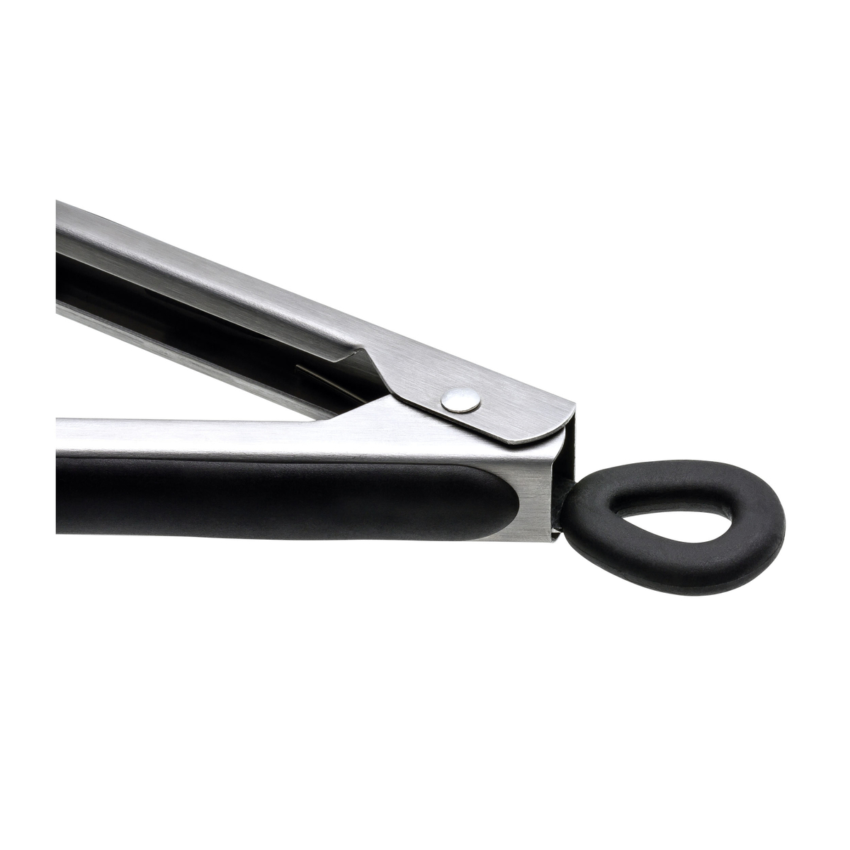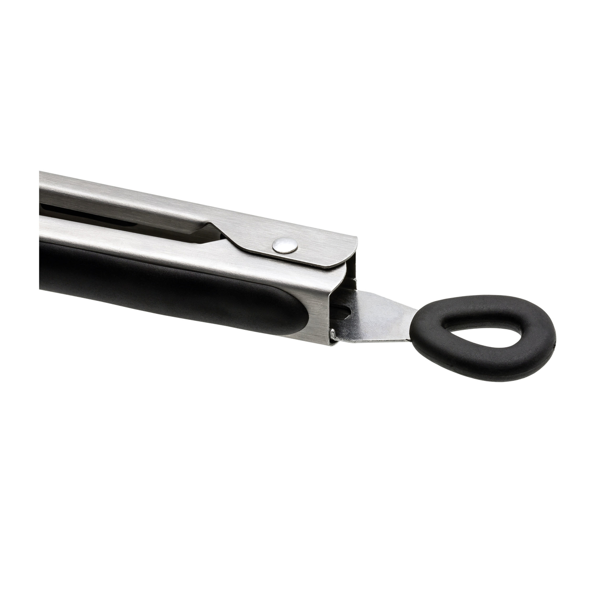Die Edelstahl-Grillzange kann über Ziehen der Schlaufe am Kopf verriegelt oder geöffnet werden.