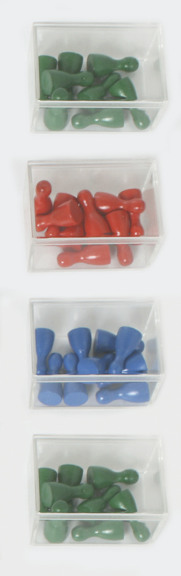 Das umfangreiche Material besteht aus: - 1 Holztablett (49 x 17 x 4 cm) - 7 Röhrchenhaltern (11,5 x 4,5 x 3 cm) - 70 Kunststoff-Röhrchen (Höhe 8,3 cm) - 7 Kunststoff-Schüsselchen (Durchmesser 5 cm) - 9 roten, 9 blauen und 18 grünen Holzkegeln (Höhe 2,5 cm) in vier Kunststoffboxen (6 x 4 x 3,5 cm) - 4 Holzbrettern zur Divison (25 x 25 x 1 cm) - je 200 roten und blauen Perlen (Durchmesser 7 mm) - 300 grünen Perlen (Durchmesser 7 mm). Die Große Division bereitet das Kind auf die schriftliche Division vor. Dabei kann der Dividend bis siebenstellig sein und der Divisor ein- bis vierstellig. Gleichzeitig wird der Zahlenraum bis in die Millionen erweitert. Die Große Division wird nach dem Kleinen Divisionsbrett, Art.-Nr. 109579, eingeführt. Ab 6 Jahren. Selbstkontrolle durch Abzählen oder Taschenrechner.