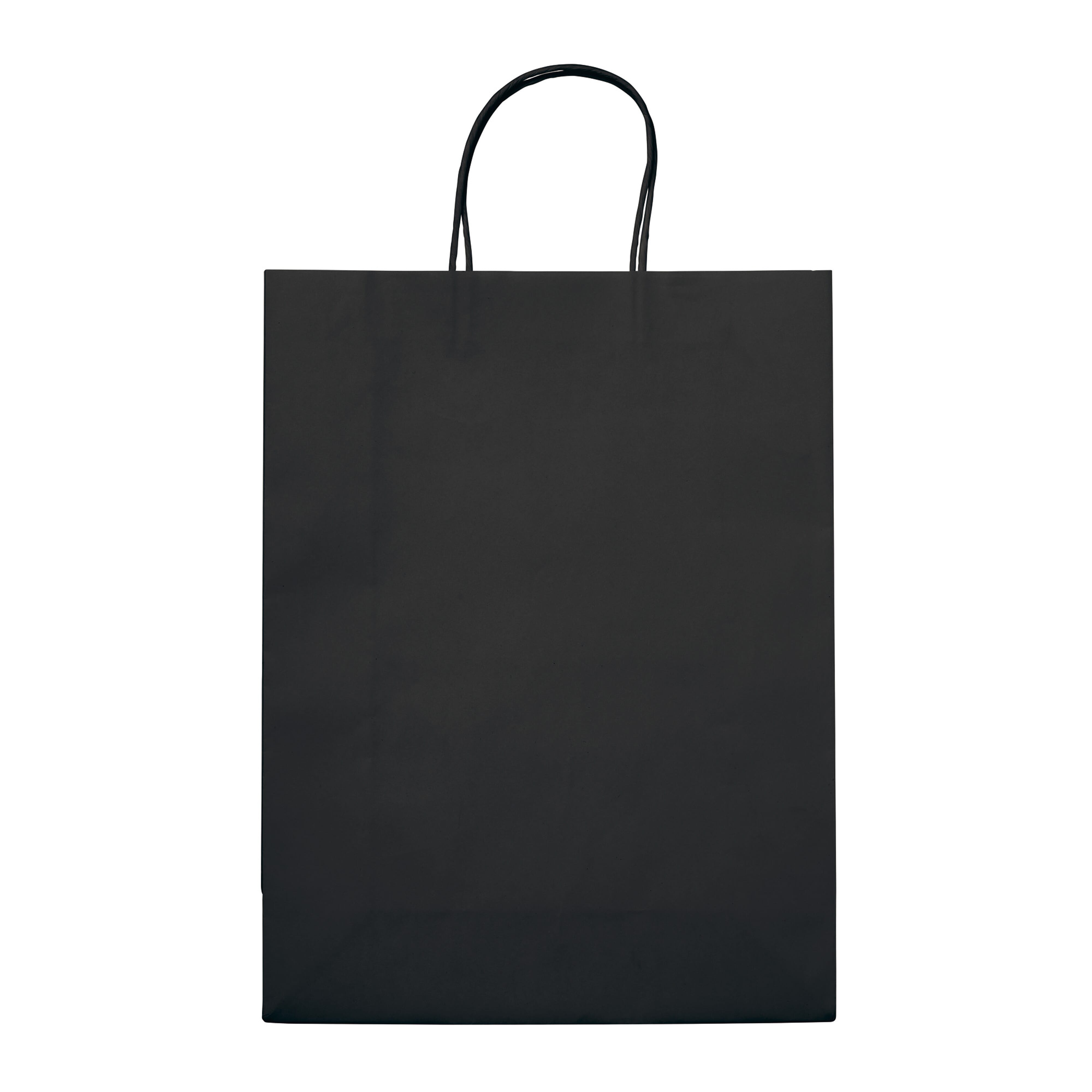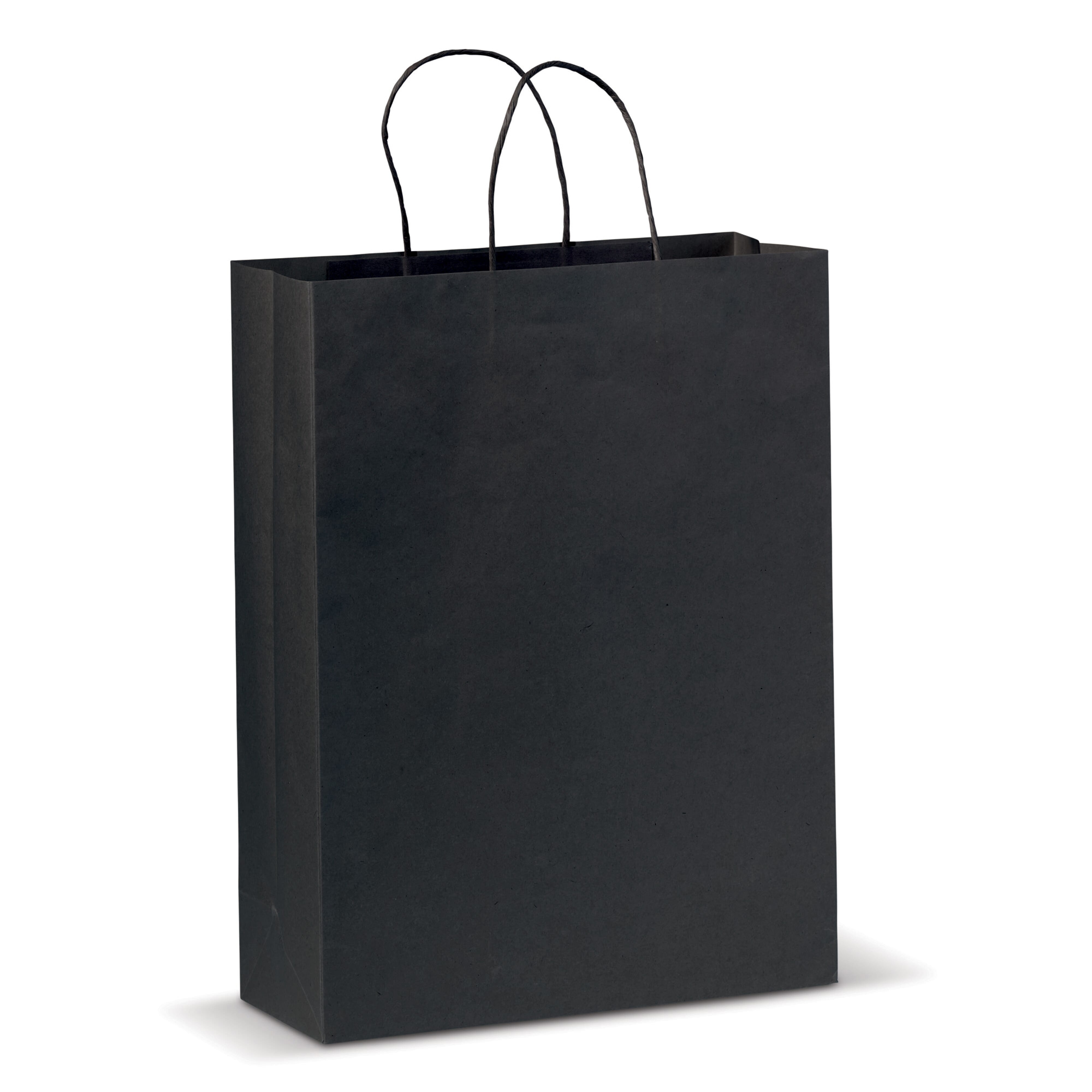 Großformatige matte Papiertragetasche mit Griffen, die aus gedrehtem Papier hergestellt sind. Die Tasche hat einen ökologischen Look. Geeignet als Geschenktasche oder als Tasche für Mitbringsel. FSC-zertifiziert.