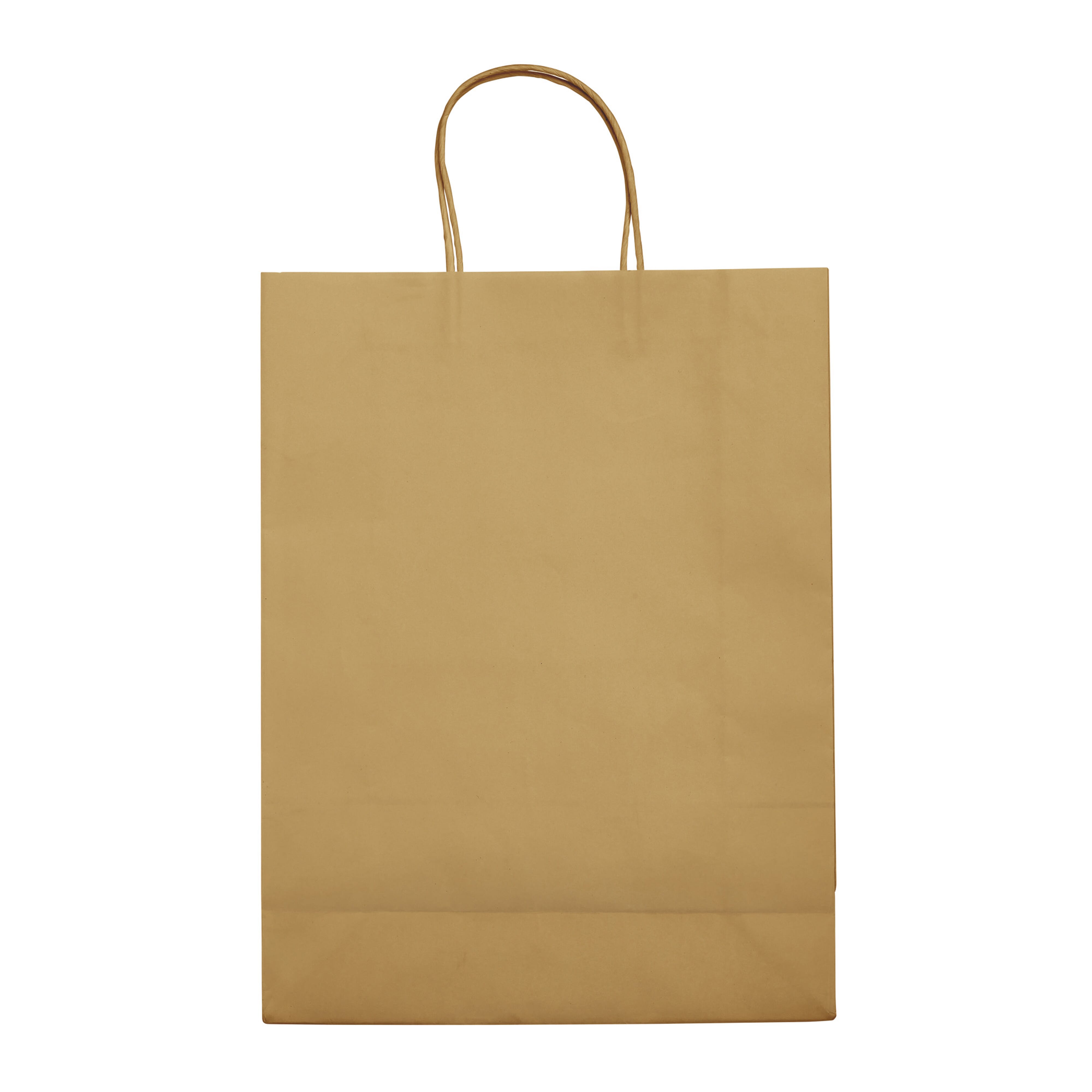Großformatige matte Papiertragetasche mit Griffen, die aus gedrehtem Papier hergestellt sind. Die Tasche hat einen ökologischen Look. Geeignet als Geschenktasche oder als Tasche für Mitbringsel. FSC-zertifiziert.
