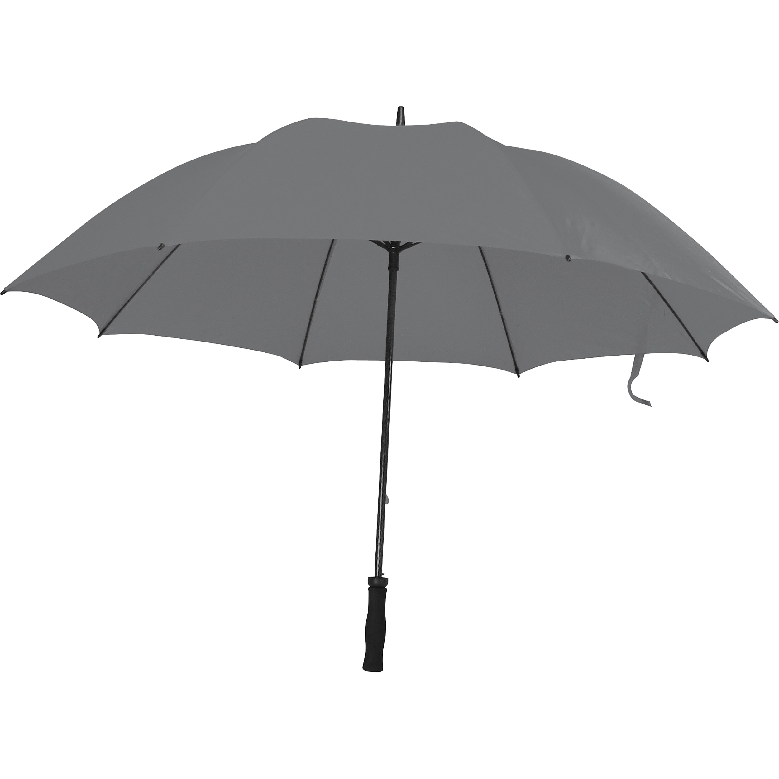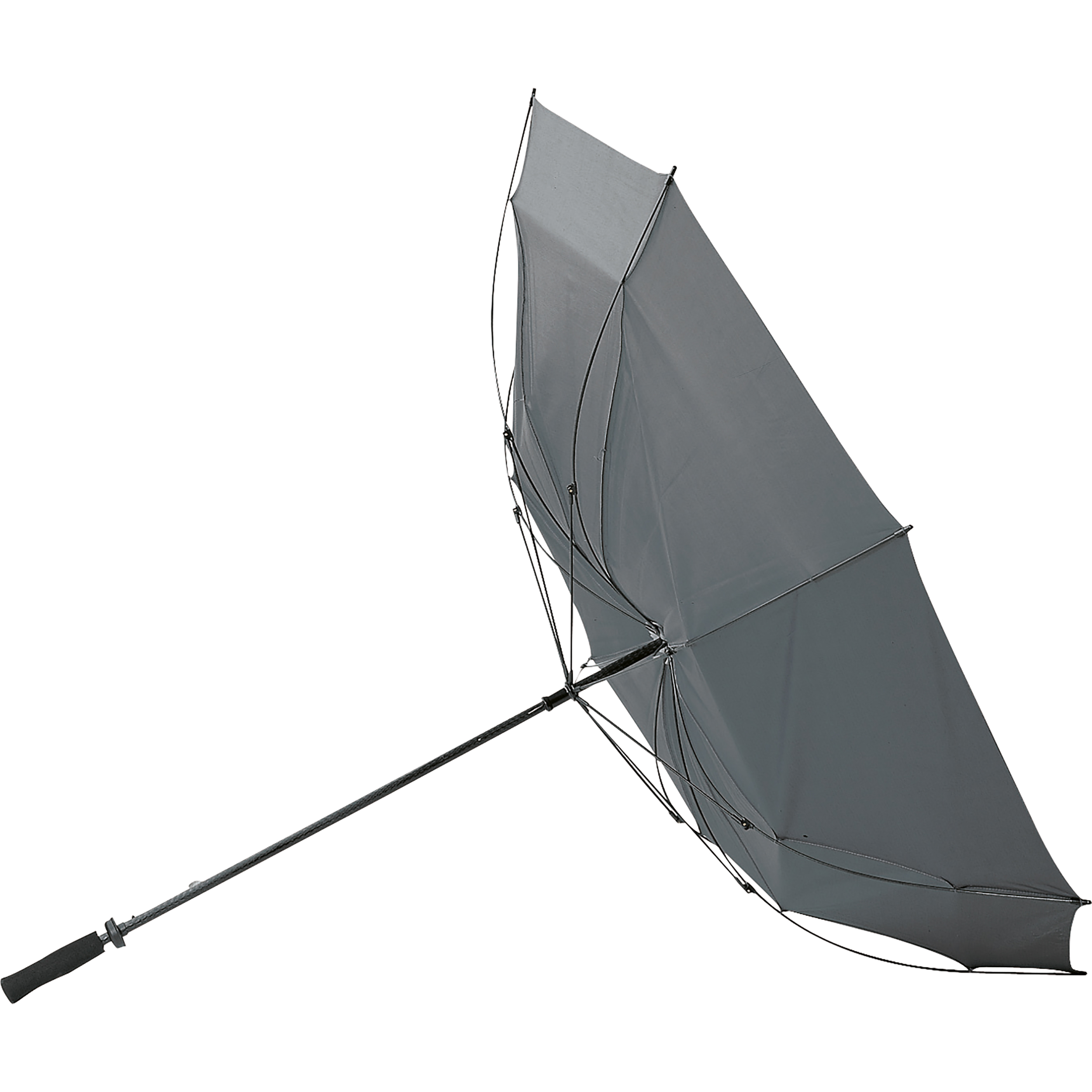 Großer Regenschirm aus 190T Polyester mit angenehmen Softgriff, Kunststoffspitzen, Gestänge in Karbonoptik und Sturmknicktechnik. Ihre Werbung drucken wir auf ein Segment.