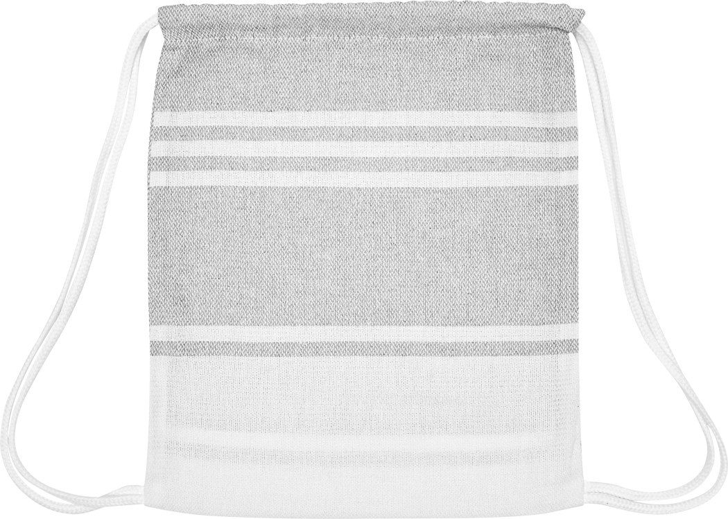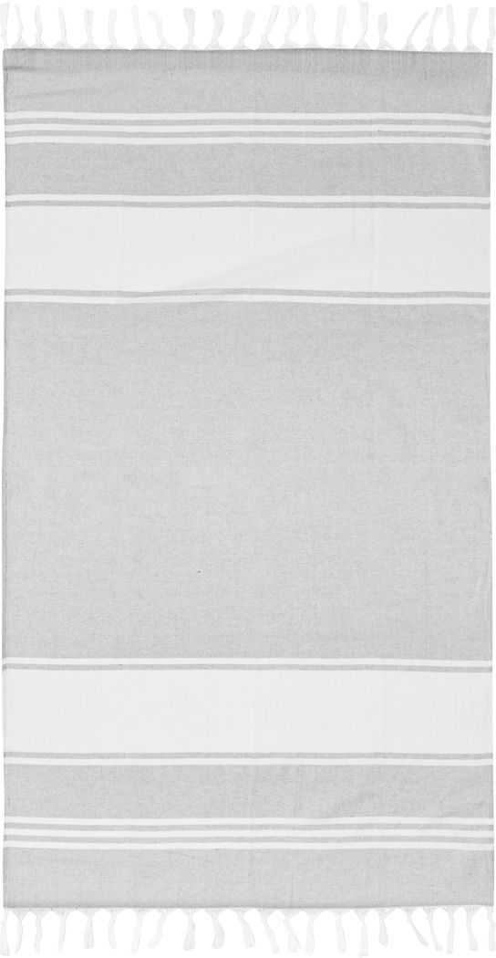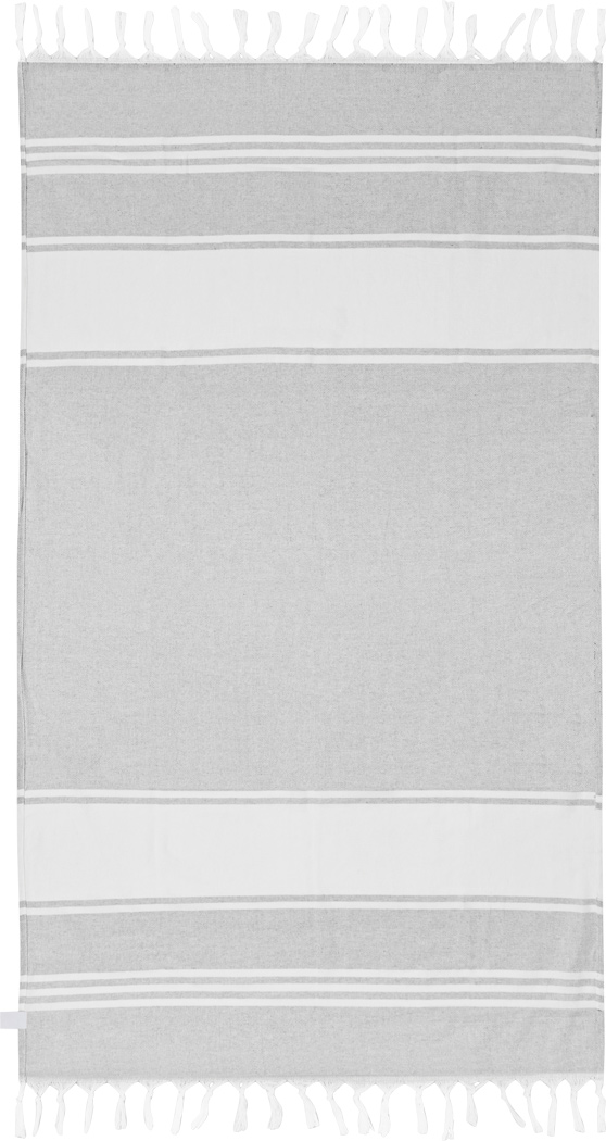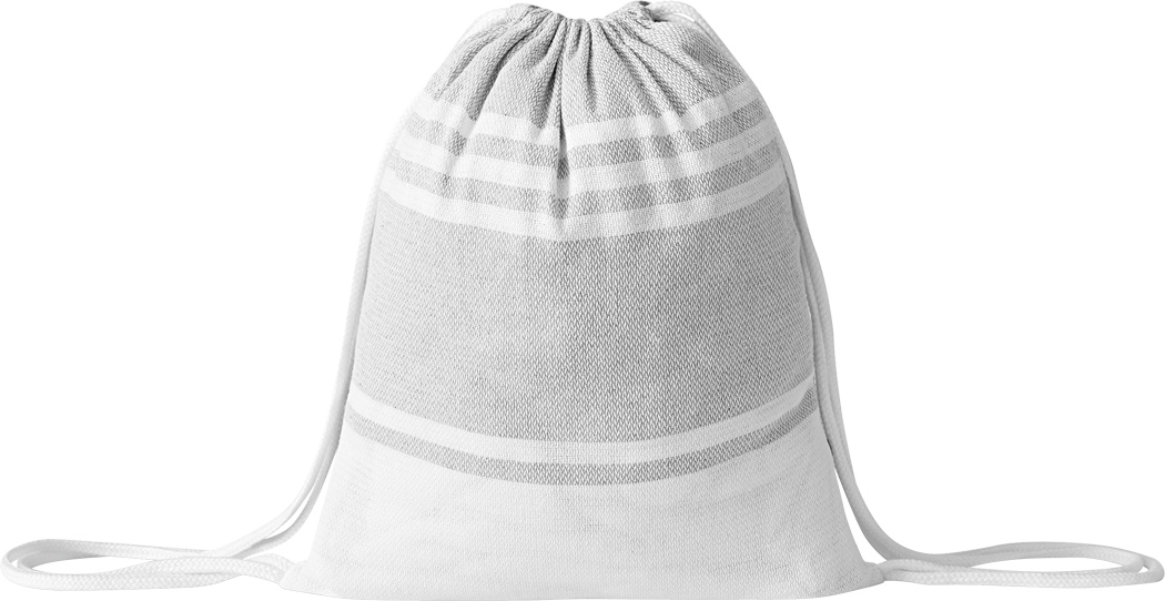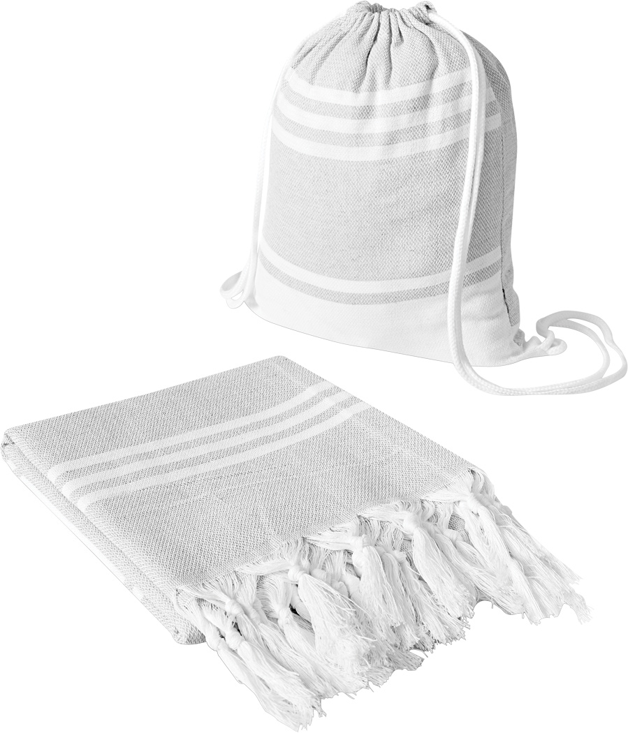 Großes Strandtuch / Saunatuch SUN & STEAM: mit weißen Streifen und Fransen, in farbig passender Tasche mit Kordelzug