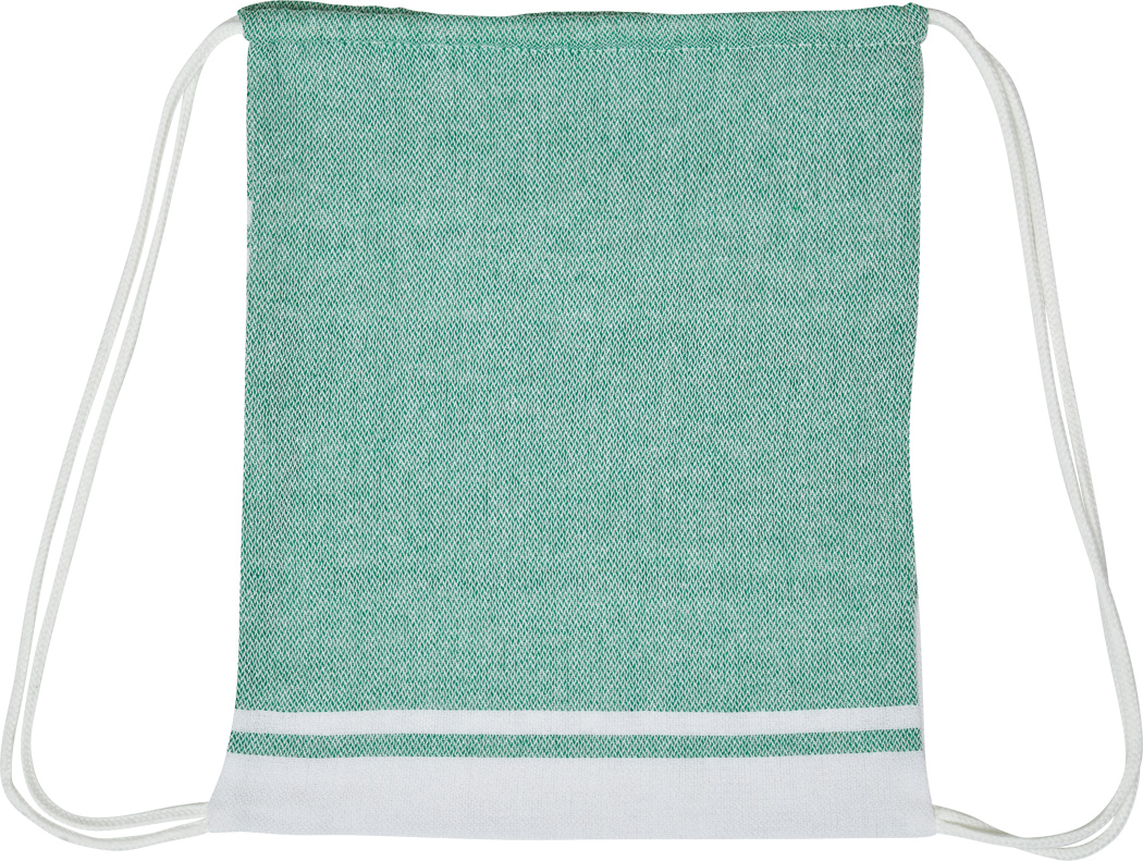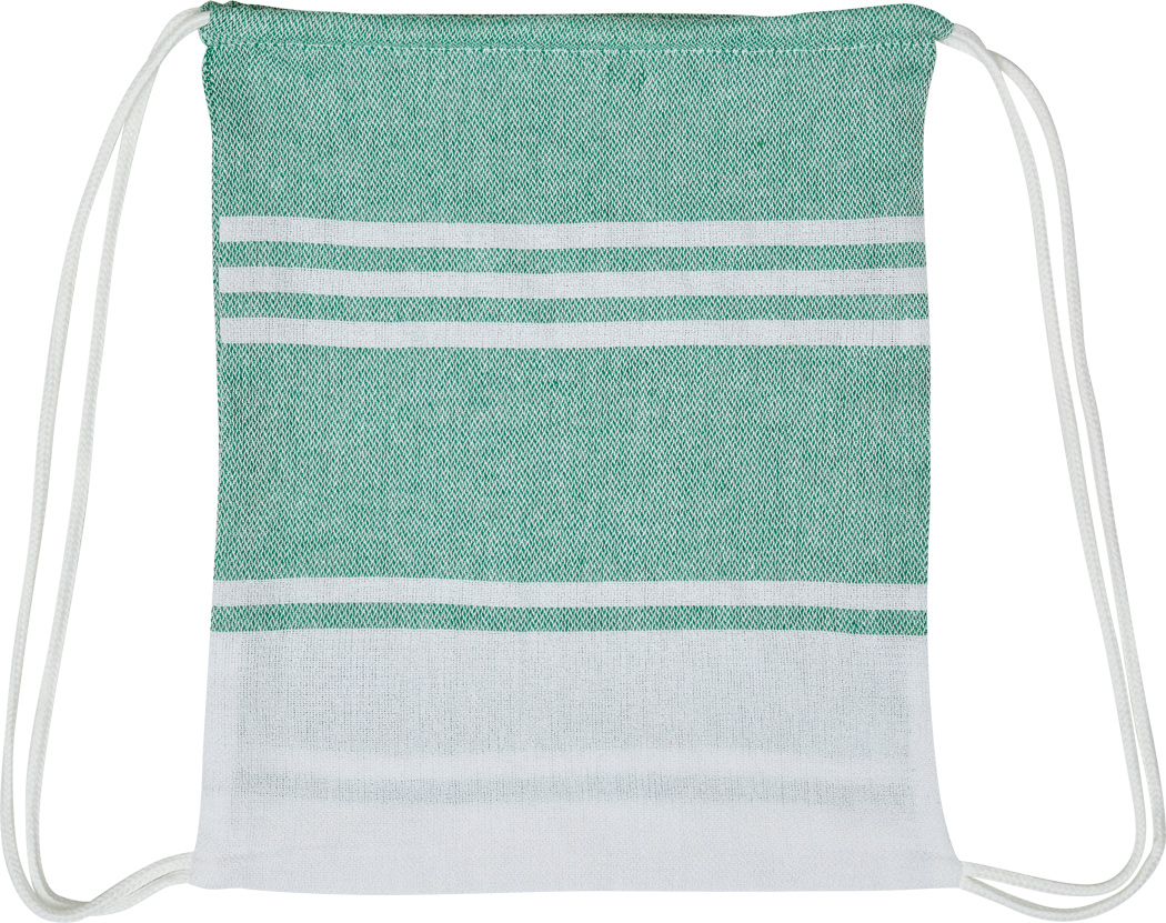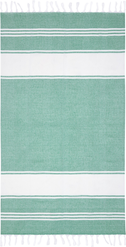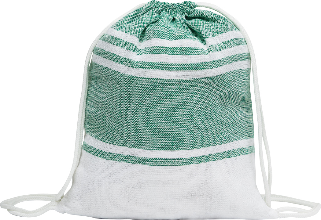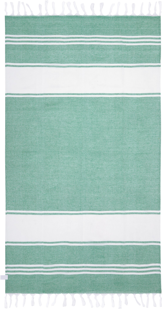 Großes Strandtuch / Saunatuch SUN & STEAM: mit weißen Streifen und Fransen, in farbig passender Tasche mit Kordelzug