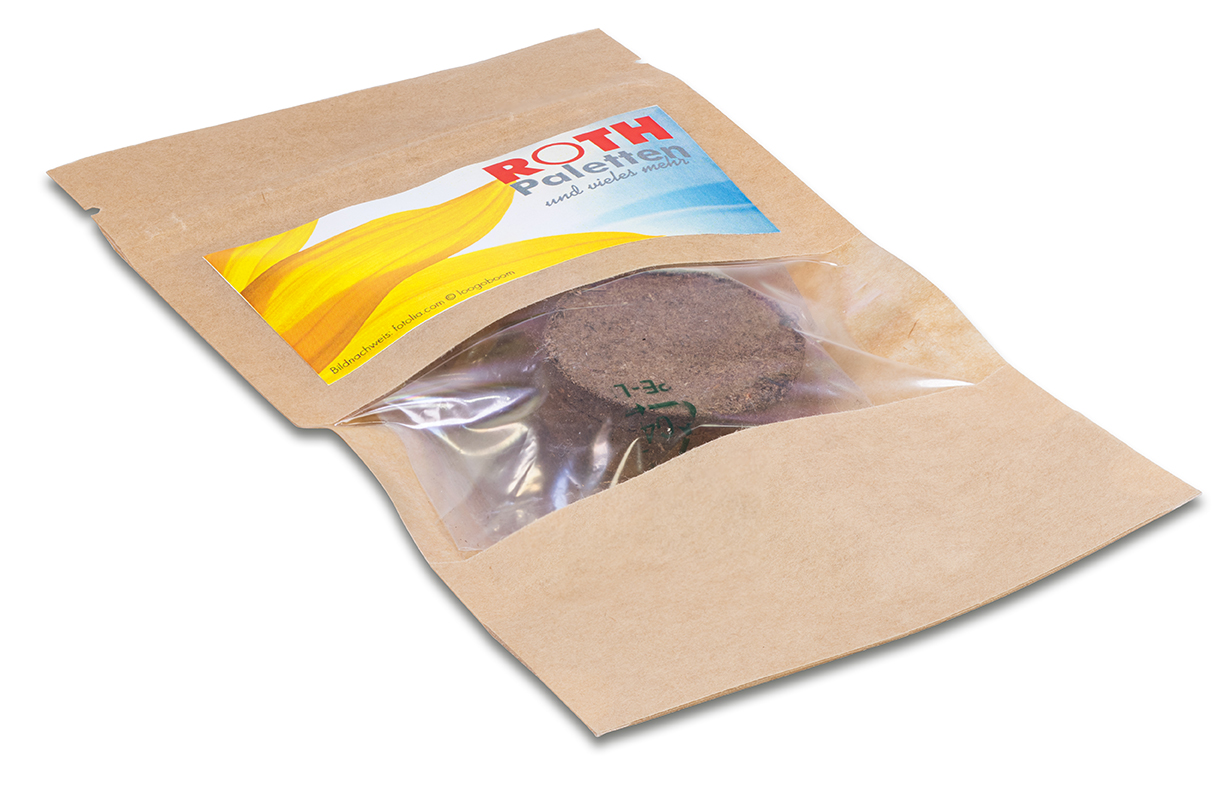 Echte Wurzeln schlagen wird Ihre Werbebotschaft mit dem kreativen Grün aus der Tüte. Dabei werden Samensorten nach Wahl, eine Substrattablette als Erde und eine Pflanzanleitung in einer Papiertüte mit Sichtfenster geliefert. Besonders geeignet sind hochwüchsige Pflanzen, wie Sonnenblumen, Ringelblume, Fichte oder Gras. Die Werbebotschaft erreicht den Kunden durch einen großflächigen bedruckbaren Aufkleber auf der Frontseite.