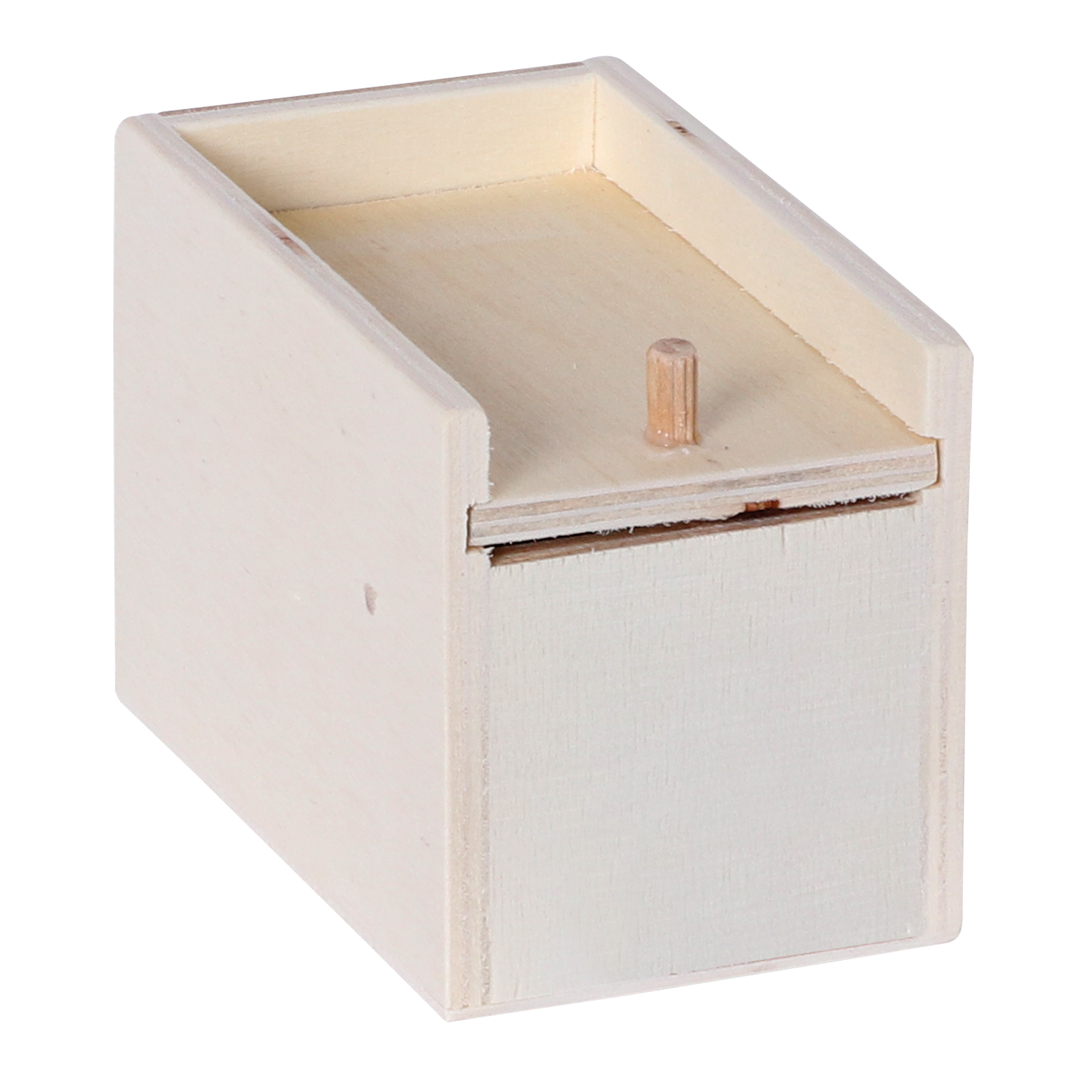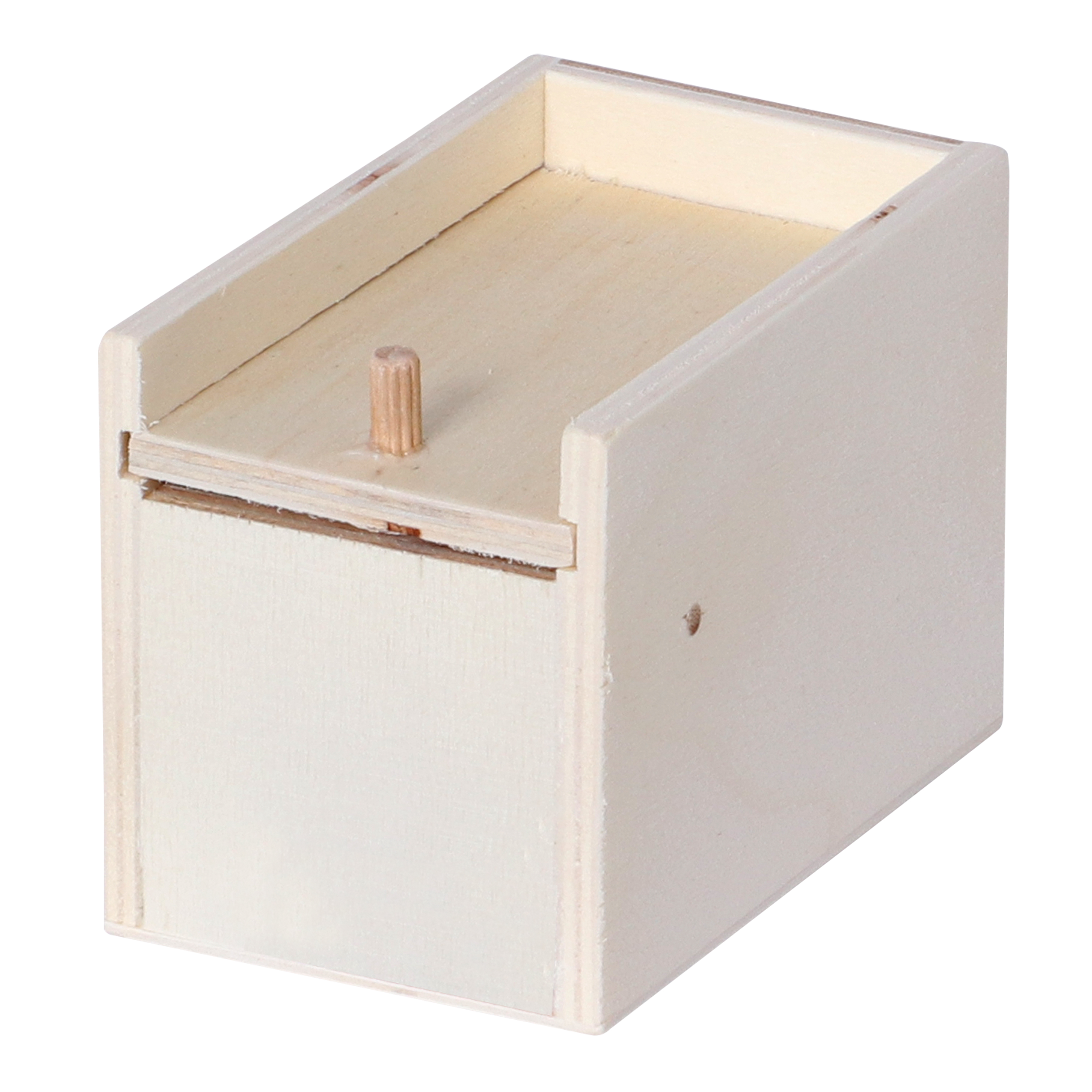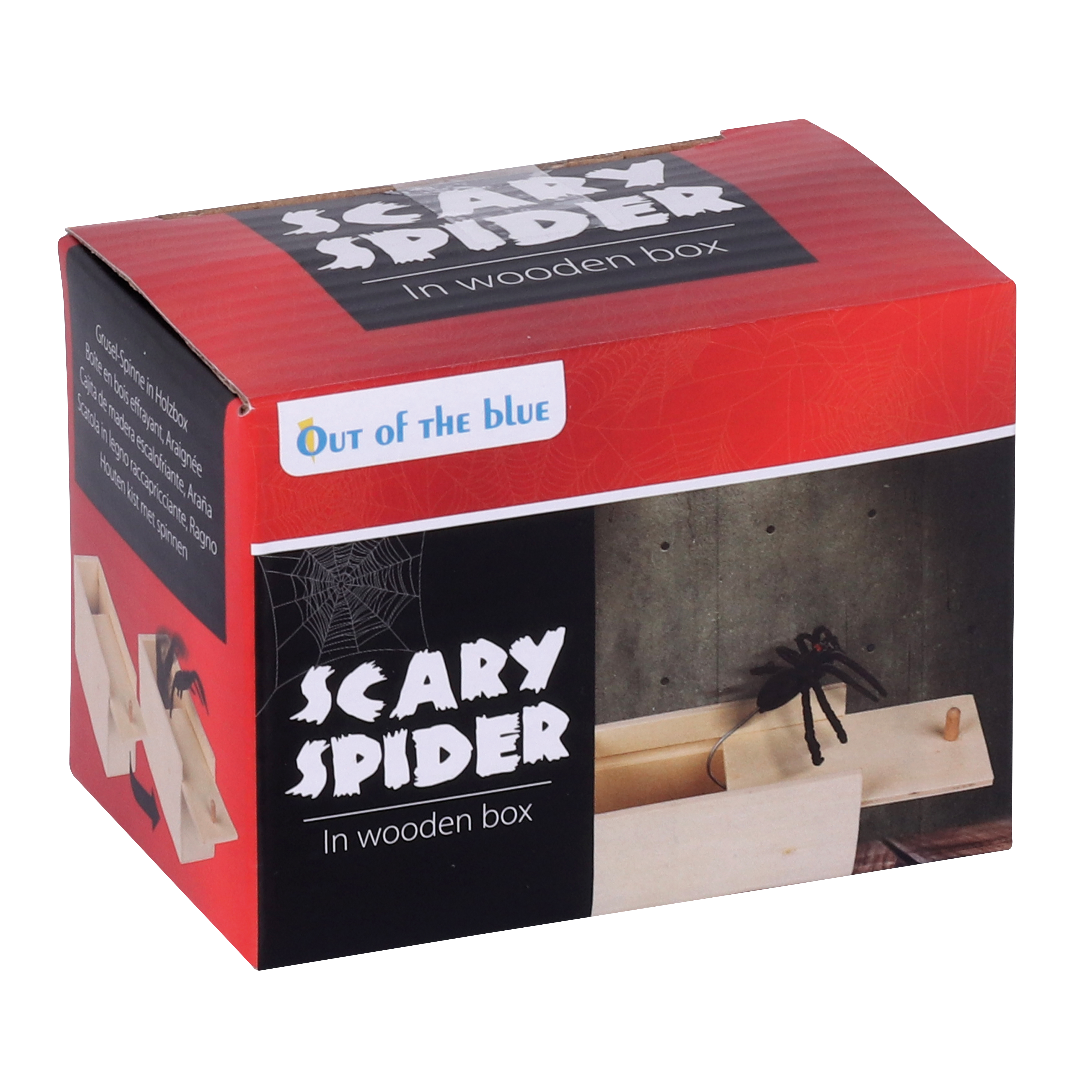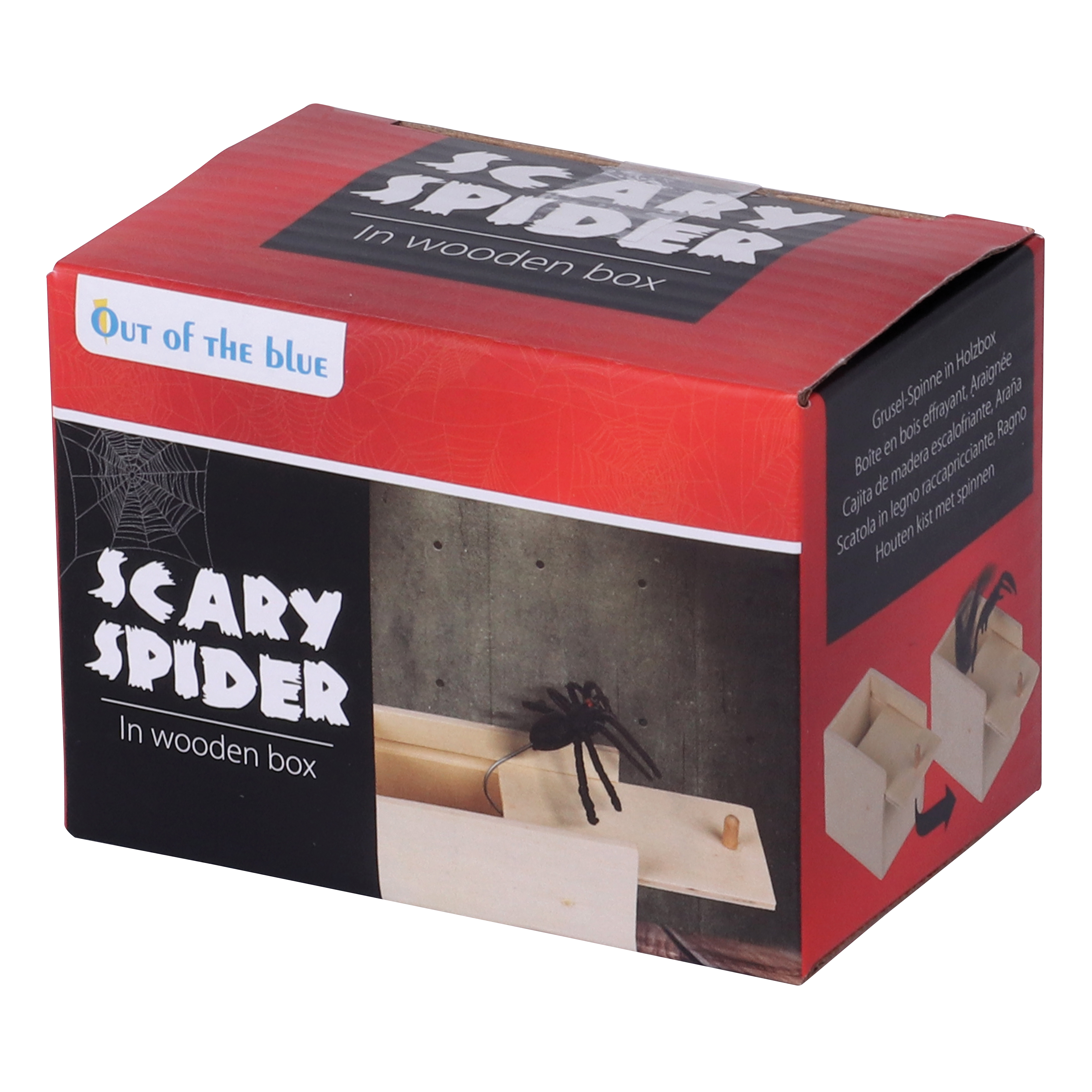 Holzbox 9 x 6x6,5cm mit Schock-Effekt! Öffnet man den Schiebedeckel springt eine gruselige Spinne hervor!