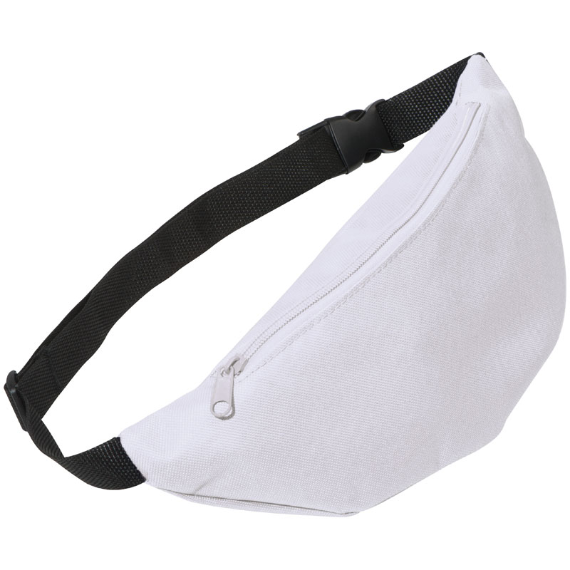 Gürteltasche aus 600D Polyester mit einem Reißverschlussfach, einem Einsteckfach und einem verstellbaren Gurt. Die Werbung wird vorne mittig auf die Tasche gedruckt.