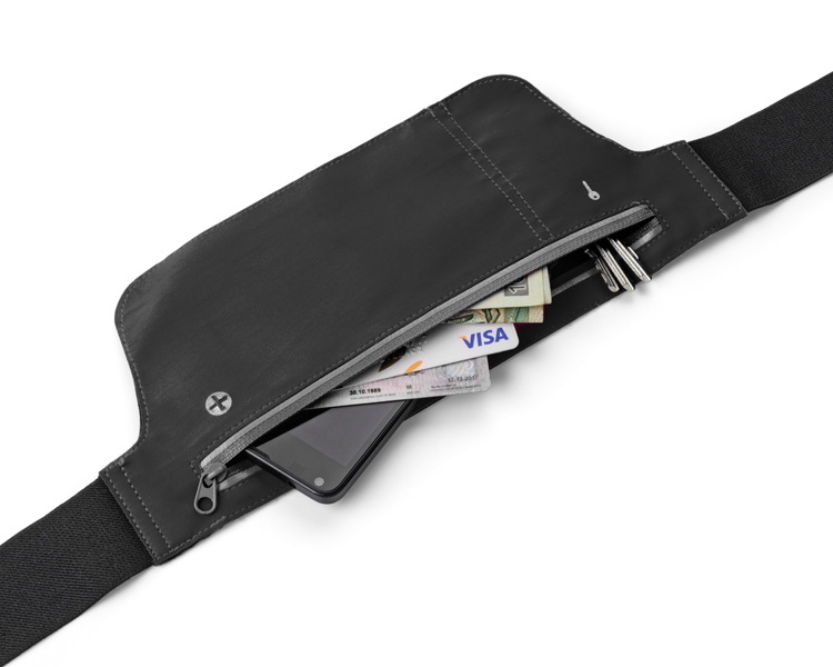Eine kleine praktische Gürteltasche. Sie ist fürs Joggen und Reisen bestens geeignet. Die Tasche verfügt über eine verschließbare Tasche mit Kopfhörerausgang. Sie ist mit einem Rückstrahlband abgeschlossen und bietet größere Sichtbarkeit nach Einbruch der Dunkelheit. Der verstellbare, breite und bequeme Gurt ermöglicht individuelle Anpassung an den Taschenumfang.
