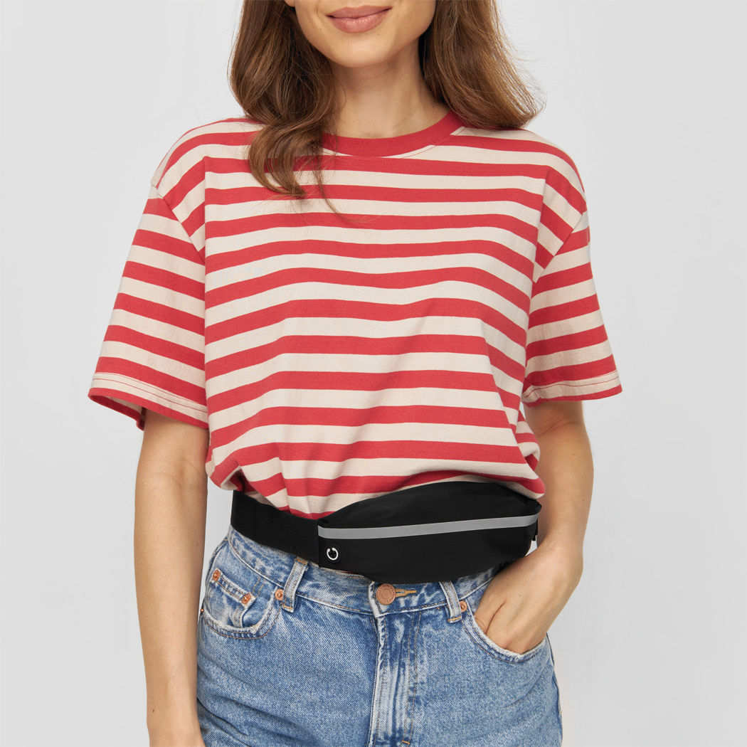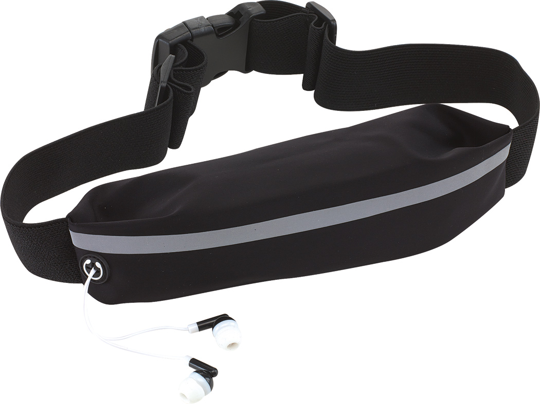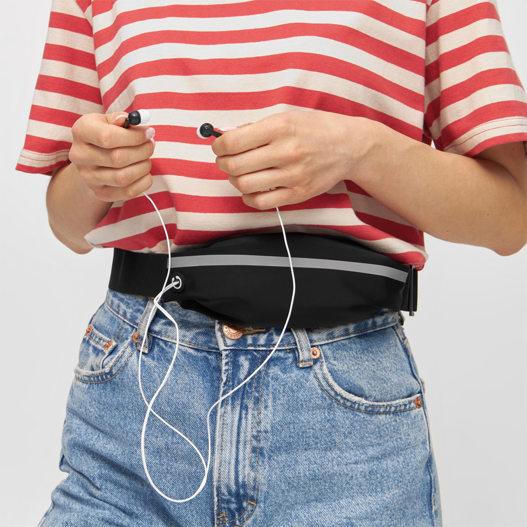 Gürteltasche SEE ME: spritzwassergeschützt, Außenseite mit Kabelzugang für Kopfhörer und Reflektor-Streifen für gute Sichtbarkeit im Straßenverkehr, Innenseite mit Reißverschluss, verstellbares und elastisches Gürtelband mit Schnappverschluss – ideal für Fitnessaktivitäten und Sportarten wie Joggen, Walken und Wandern