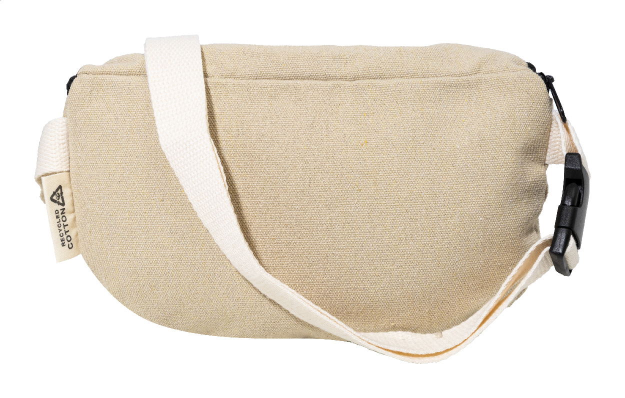 Recycelte Canvas-Gürteltasche mit Reißverschlussfach und verstellbarem Riemen. Material: 70 % recycelte Baumwolle und 30 % recyceltes Polyester. Mit Label recycelte Baumwolle.