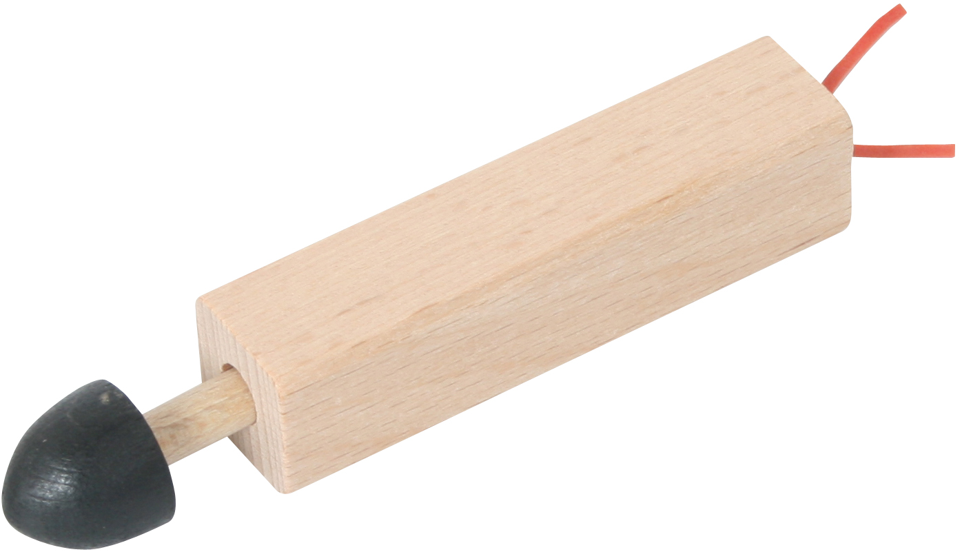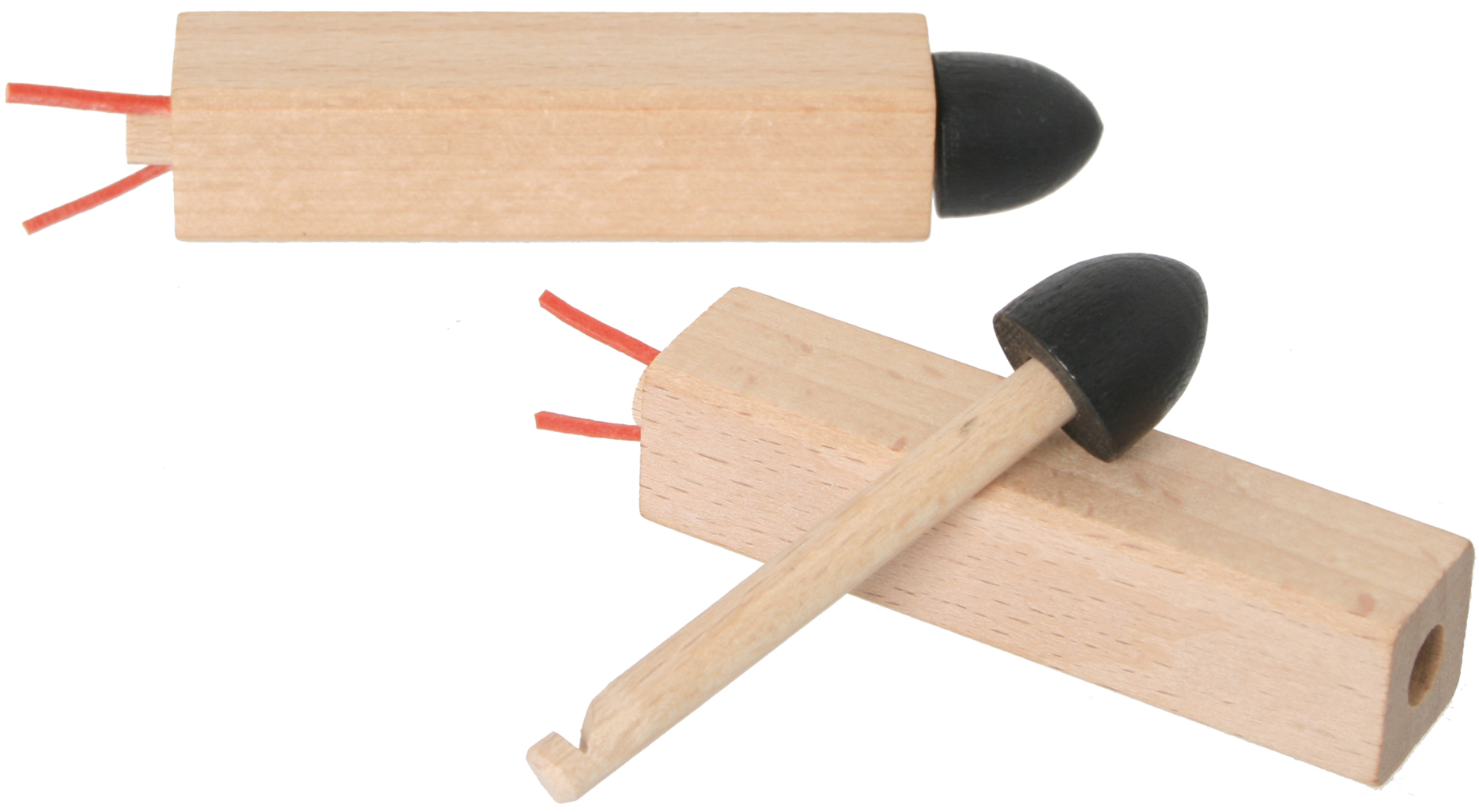 Sie sagen Ihrem Opfer, es soll mit dem Haken die Gummischlinge im Innern des Hölzchens erwischen. Obwohl Sie es immer wieder vormachen, wird es Ihr Gegenüber nie und nimmer schaffen! Warum wohl ...